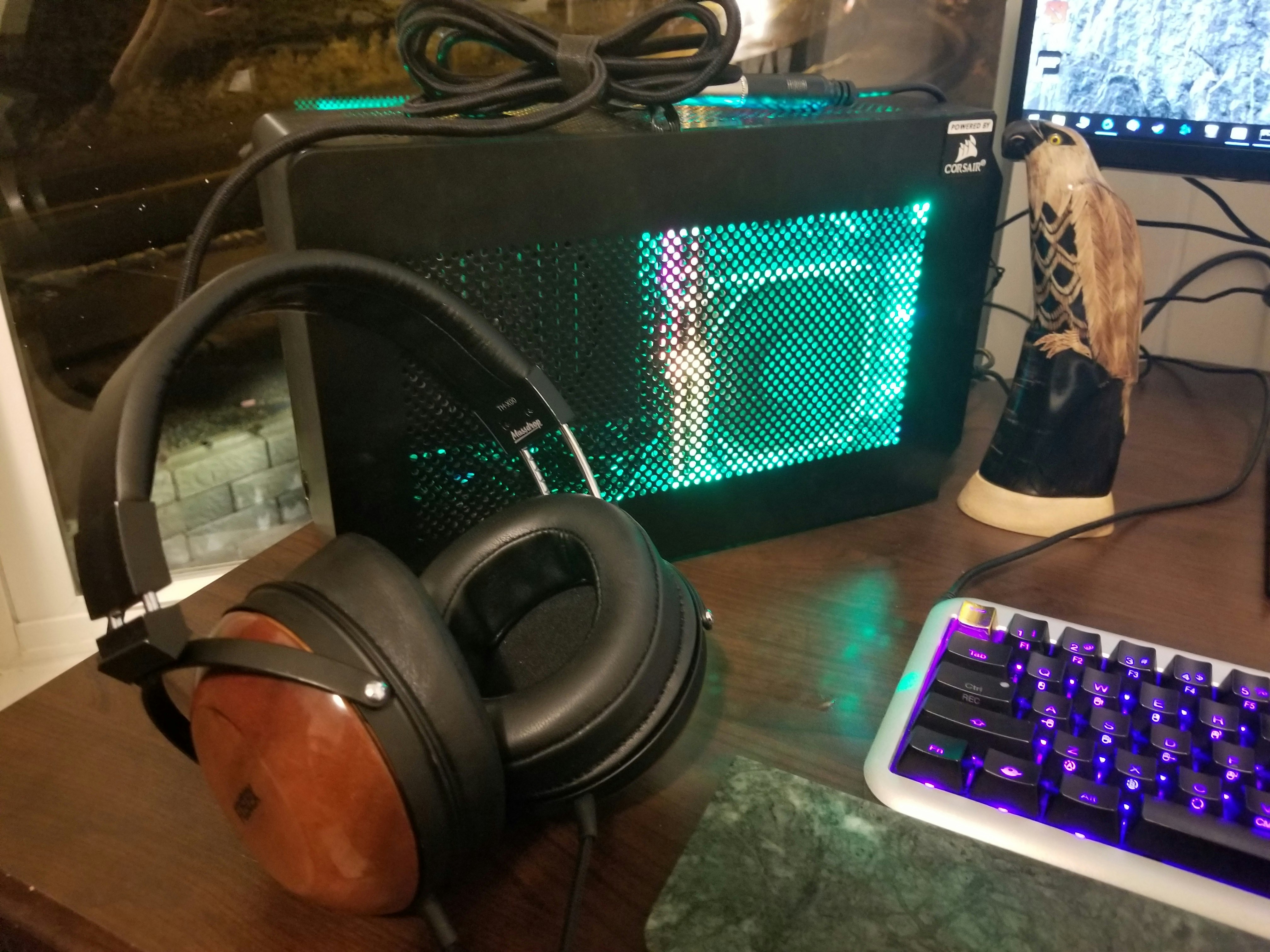 Setup: iTunes ALAC --> optical/TOSLINK cable --> Schiit Modi 2 multibit DAC --> APPJ tube amp --> Sennheiser 6xx headphones or HiFiman HE-4xx headphones.
