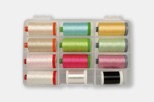 Note: This drop is for one set (12 spools). At checkout, you'll have your choice of collection: Alison Glass essentials, Basically Patrick, Mark Lipinski Basics, Sew in Love, Simplify, or Subtle Sampler.