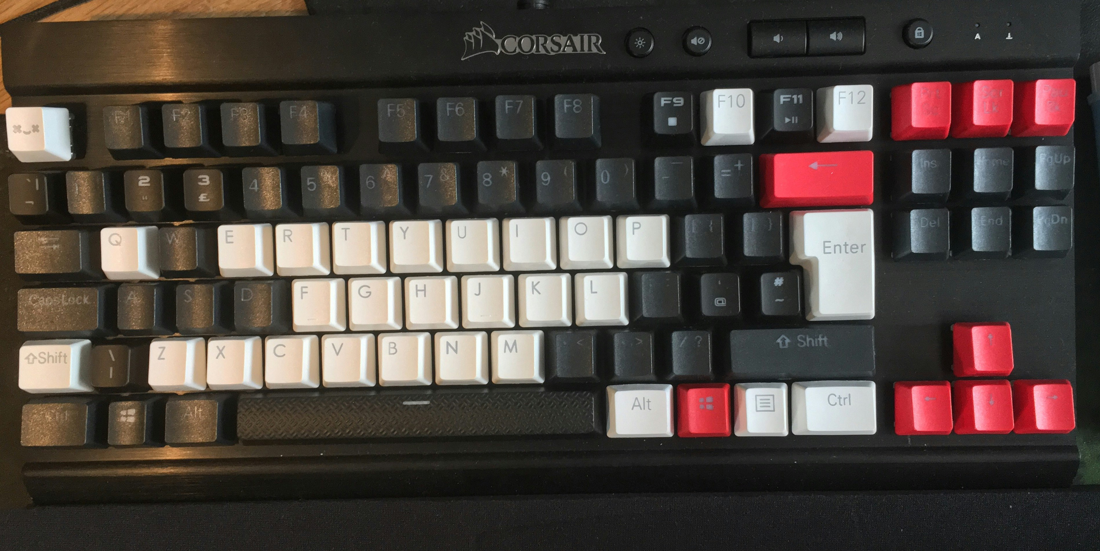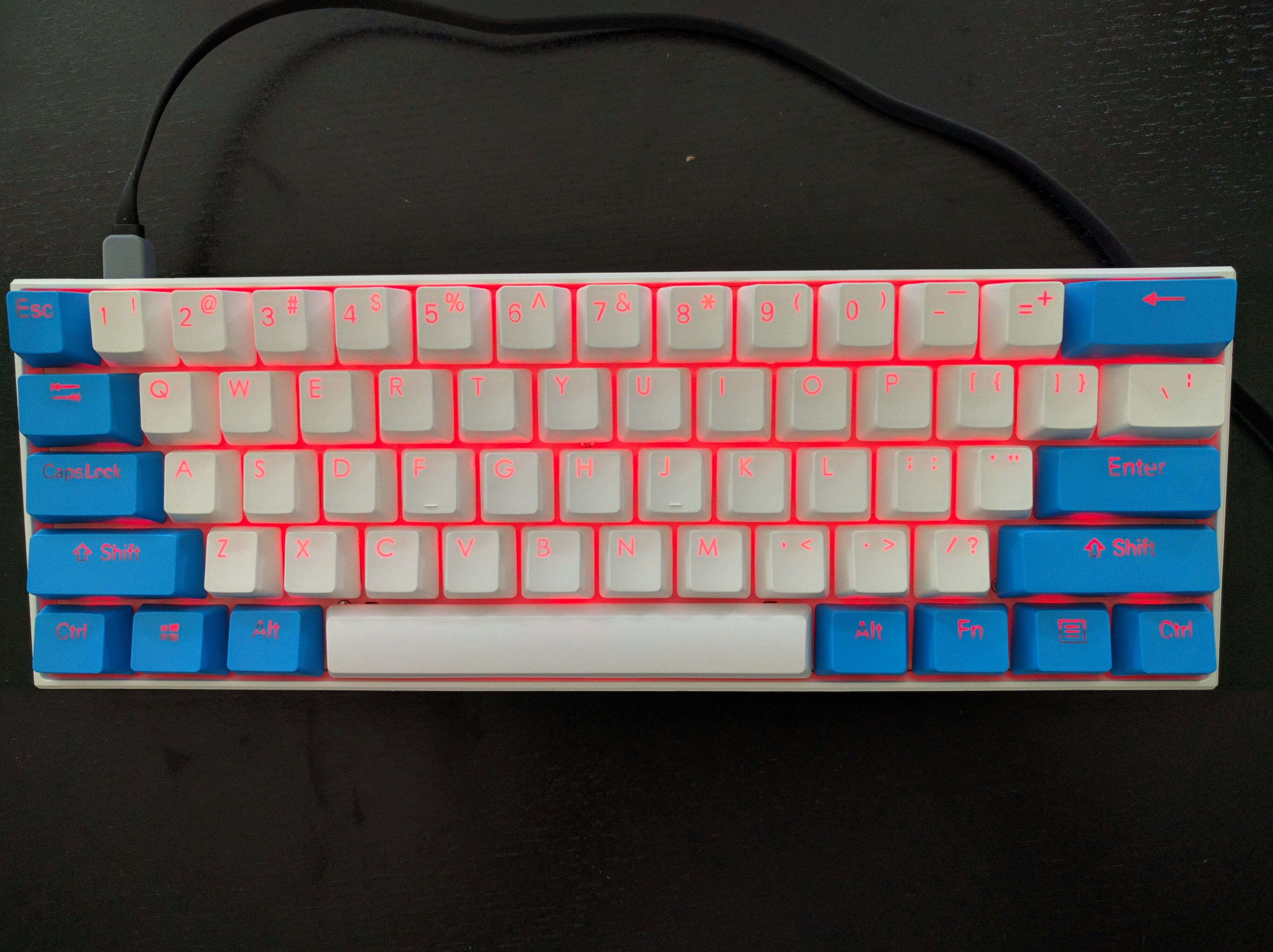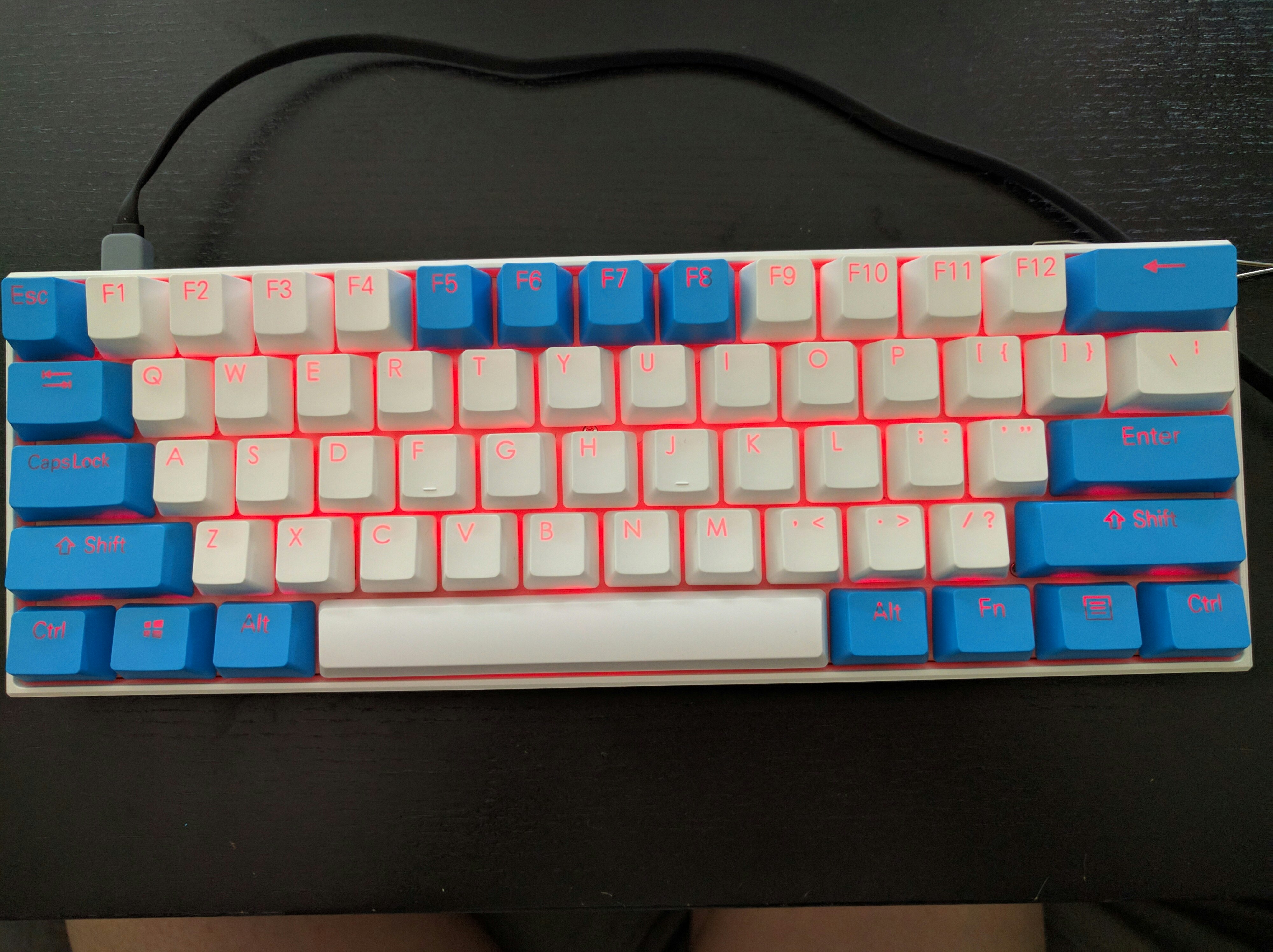 LOL @ people complaining at the font....this basically looks like a better Vortex PBT key set with the number row cut out at the right place to actually shine through. The only thing I kinda don't like are the color alternating F5-F8 keys and Print Screen-Page Break keys. not sure why they did that. Well that and spelled-out Enter and Shift keys.