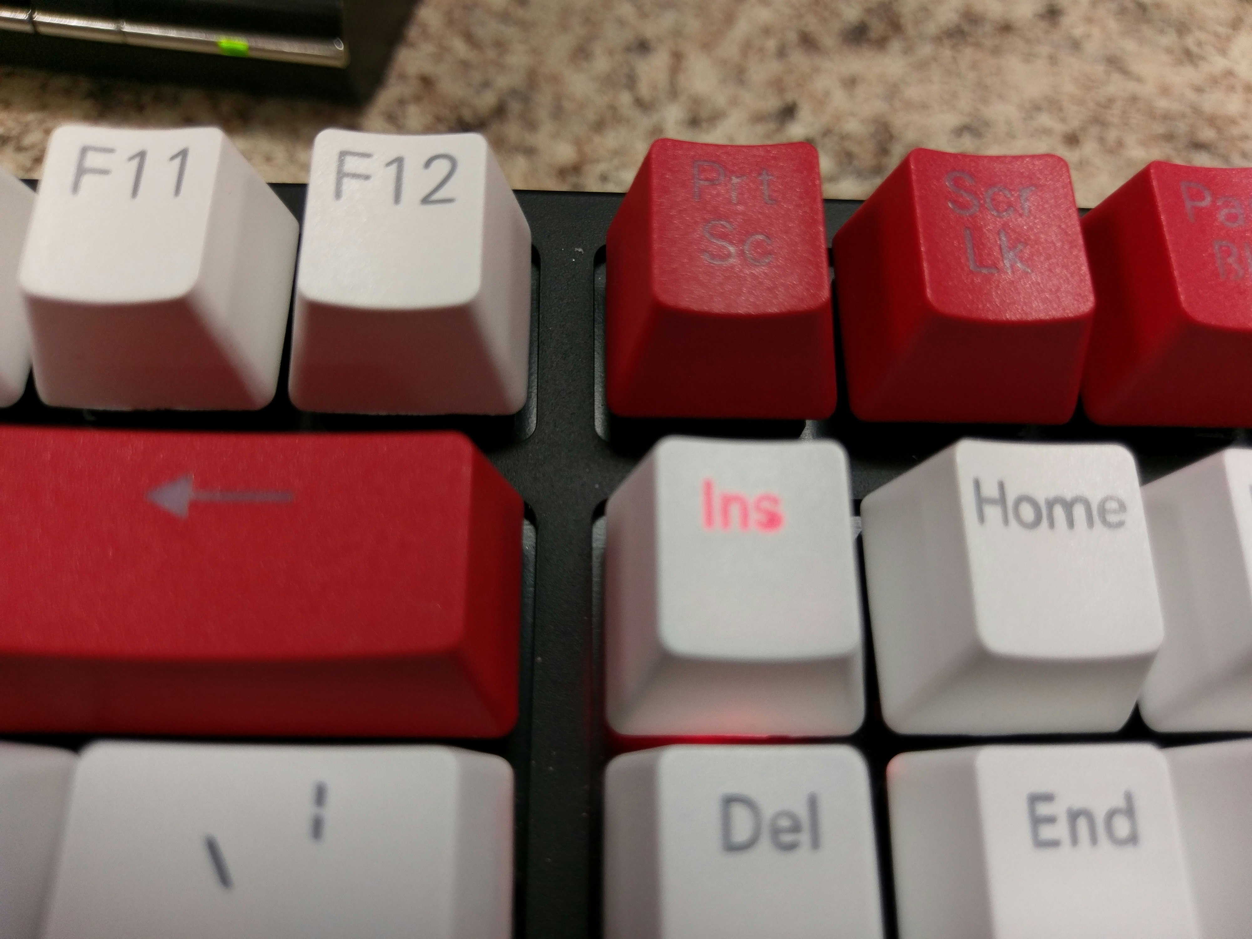 To add to this problem, the F keys' and modifier keys' legends are unnecessarily big. Who knows why they decided to center align the F keys' legends and left align the alphanumerics.
