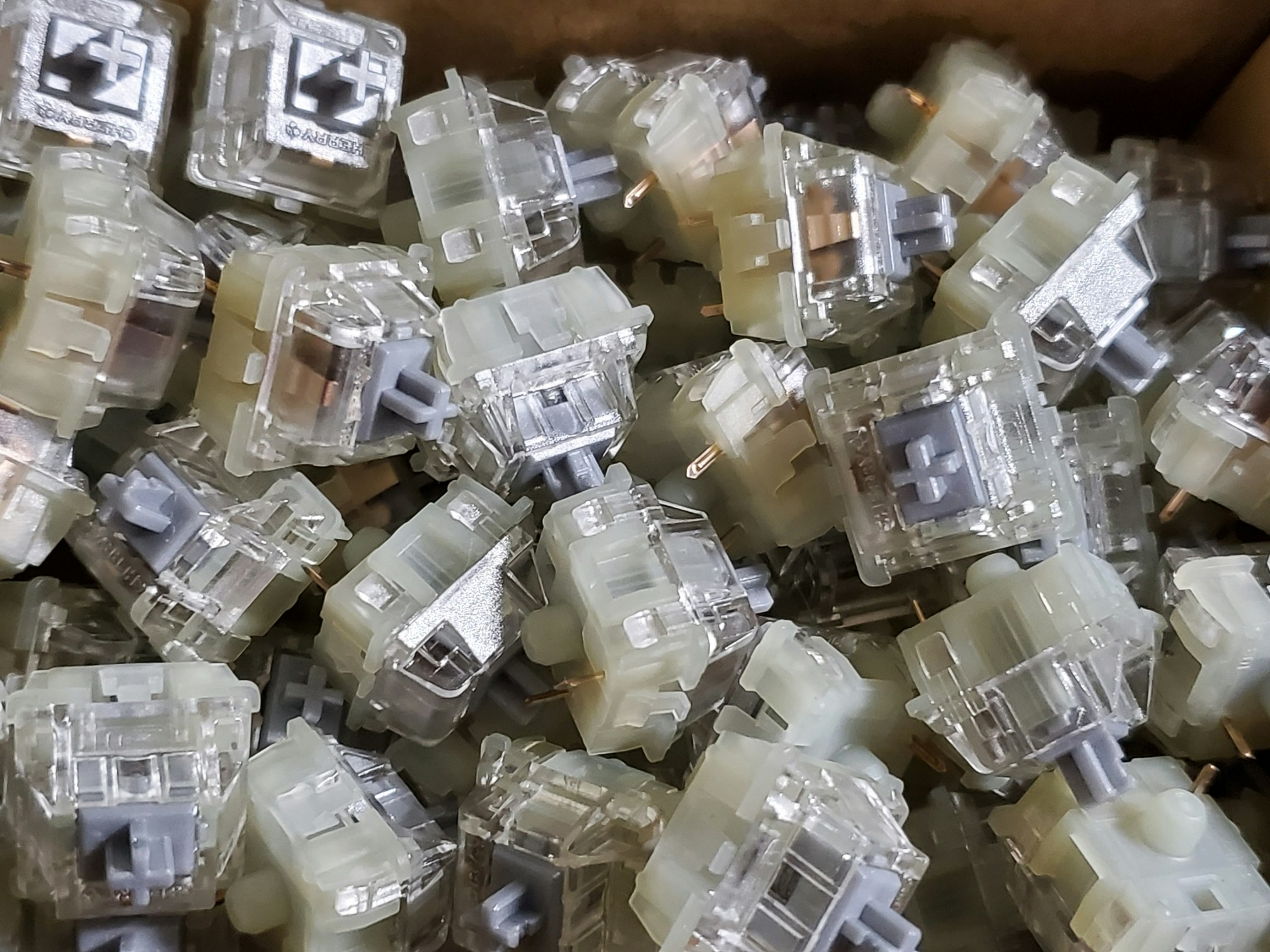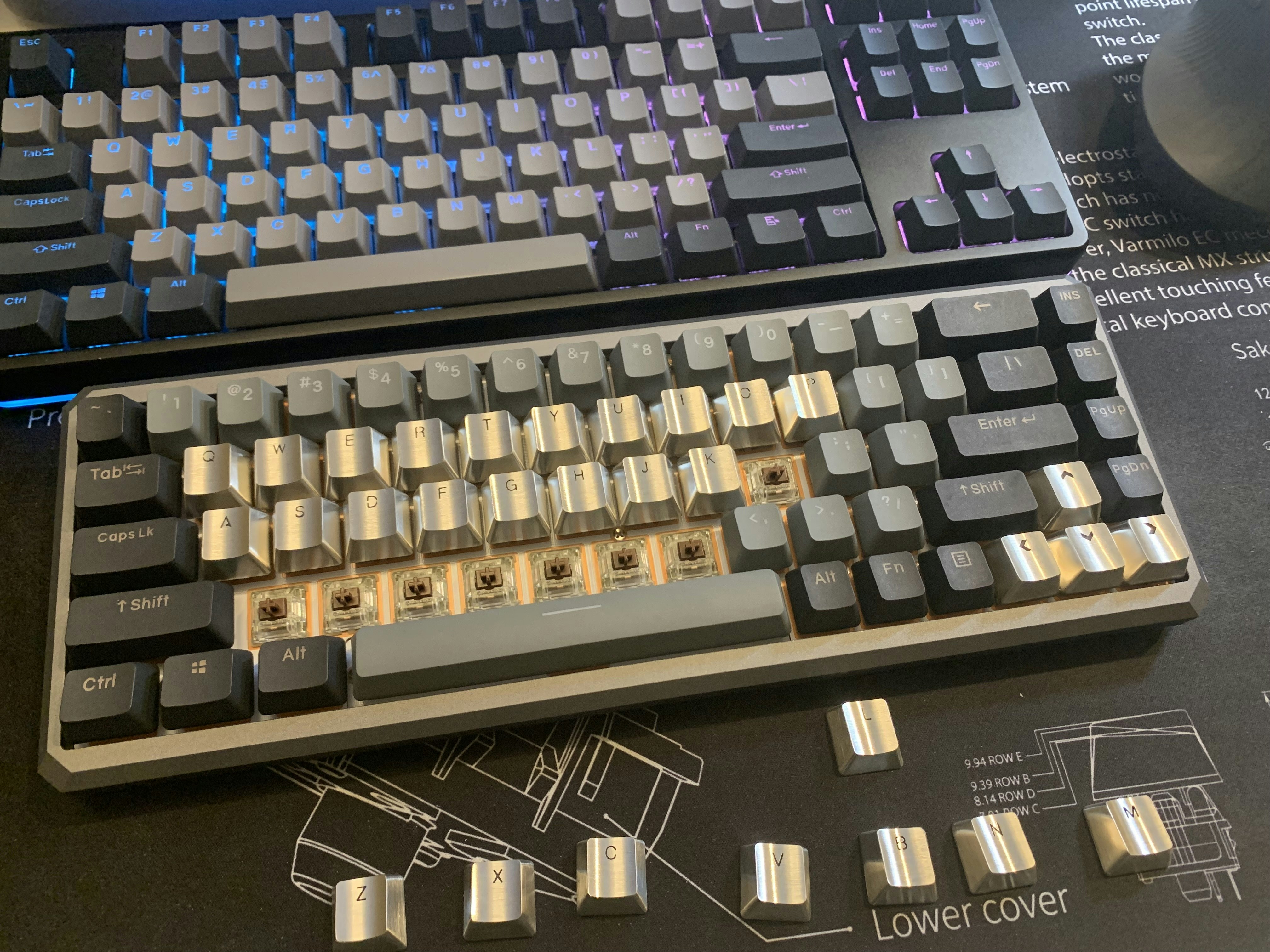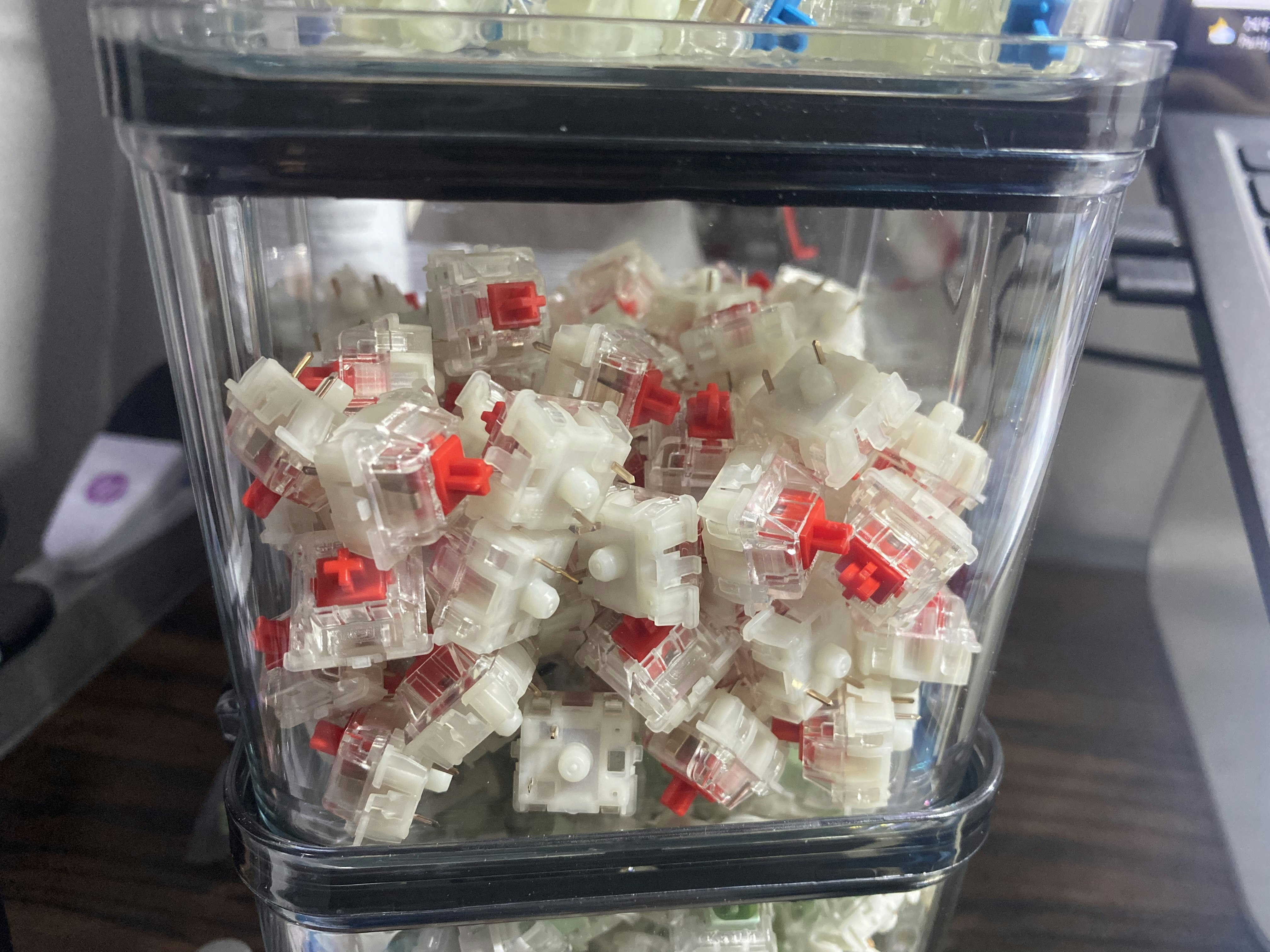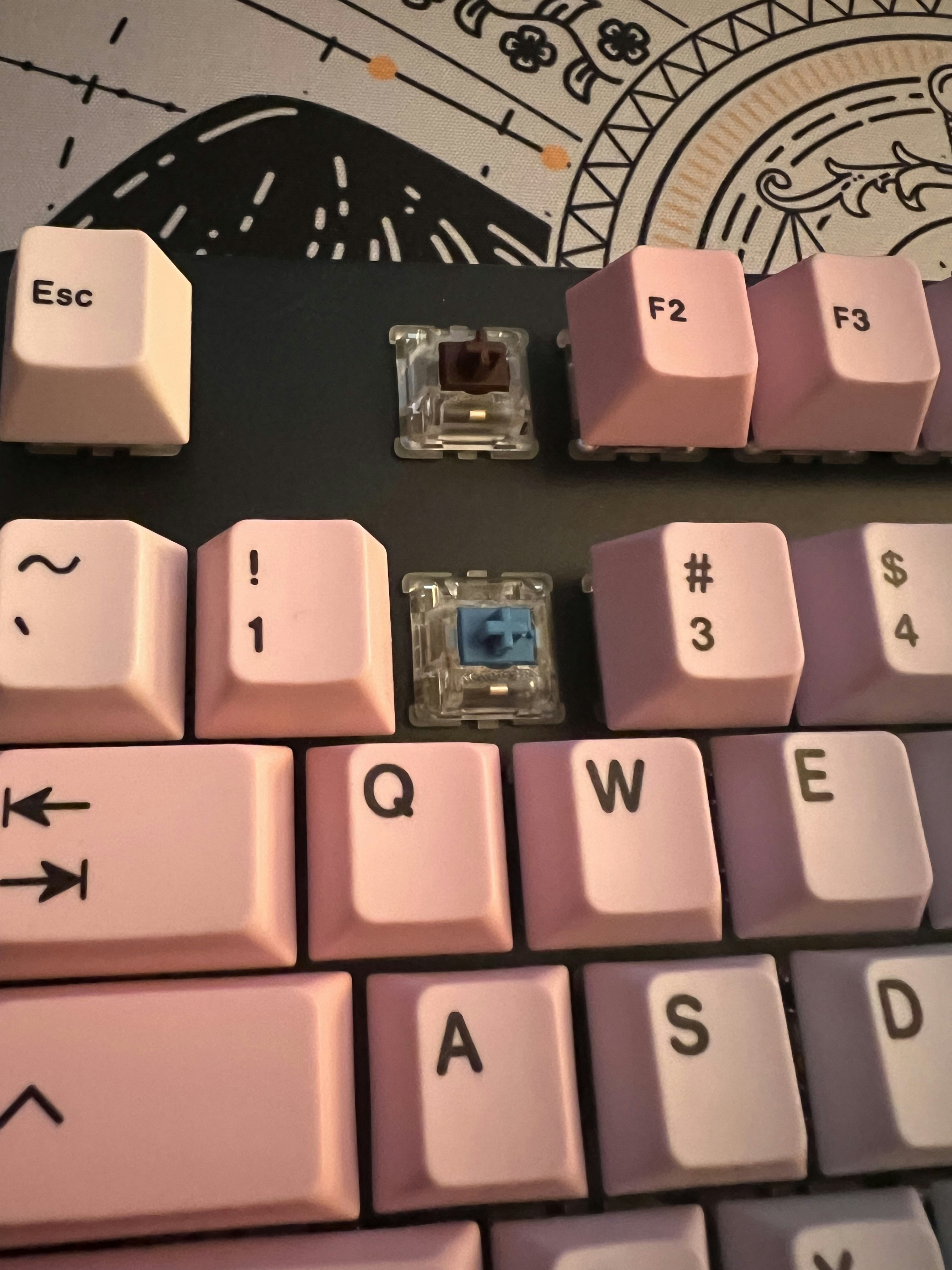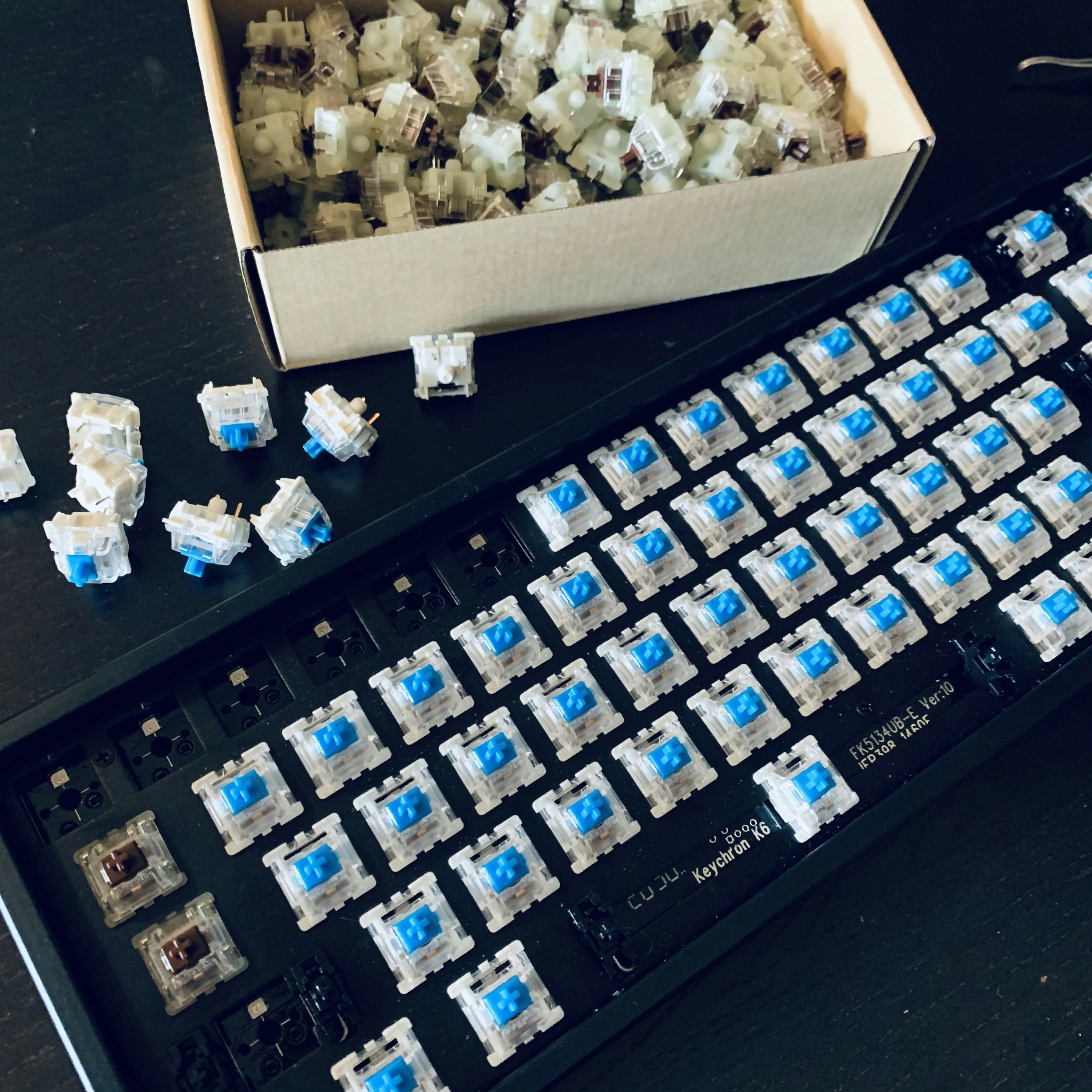 Wanted a full set of Blues (only 70 packs in stock) but also wanted to see what other switches were like. Ordered 70 of blue and brown. Love the clicky, so put the blues on everything except the F...