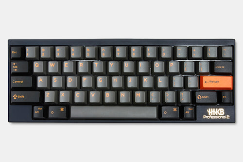Dark gray alphas and deep black modifiers pair with bright orange legends in this set from DOMIKEY in collaboration with Hammer. Designed for the HHKB keyboard, these Topre-compatible keycaps are made of thick ABS plastic with doubleshot legends Read More