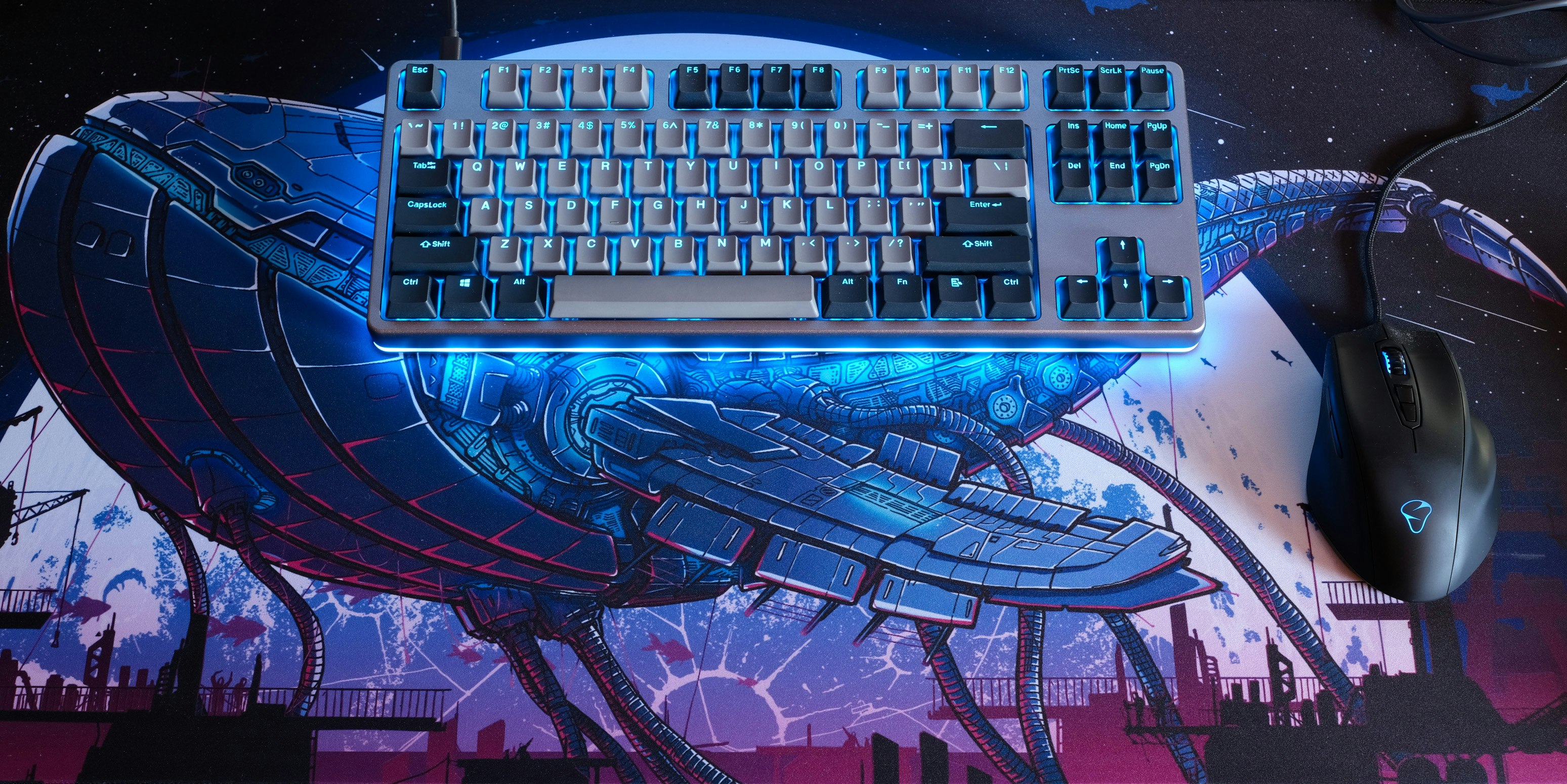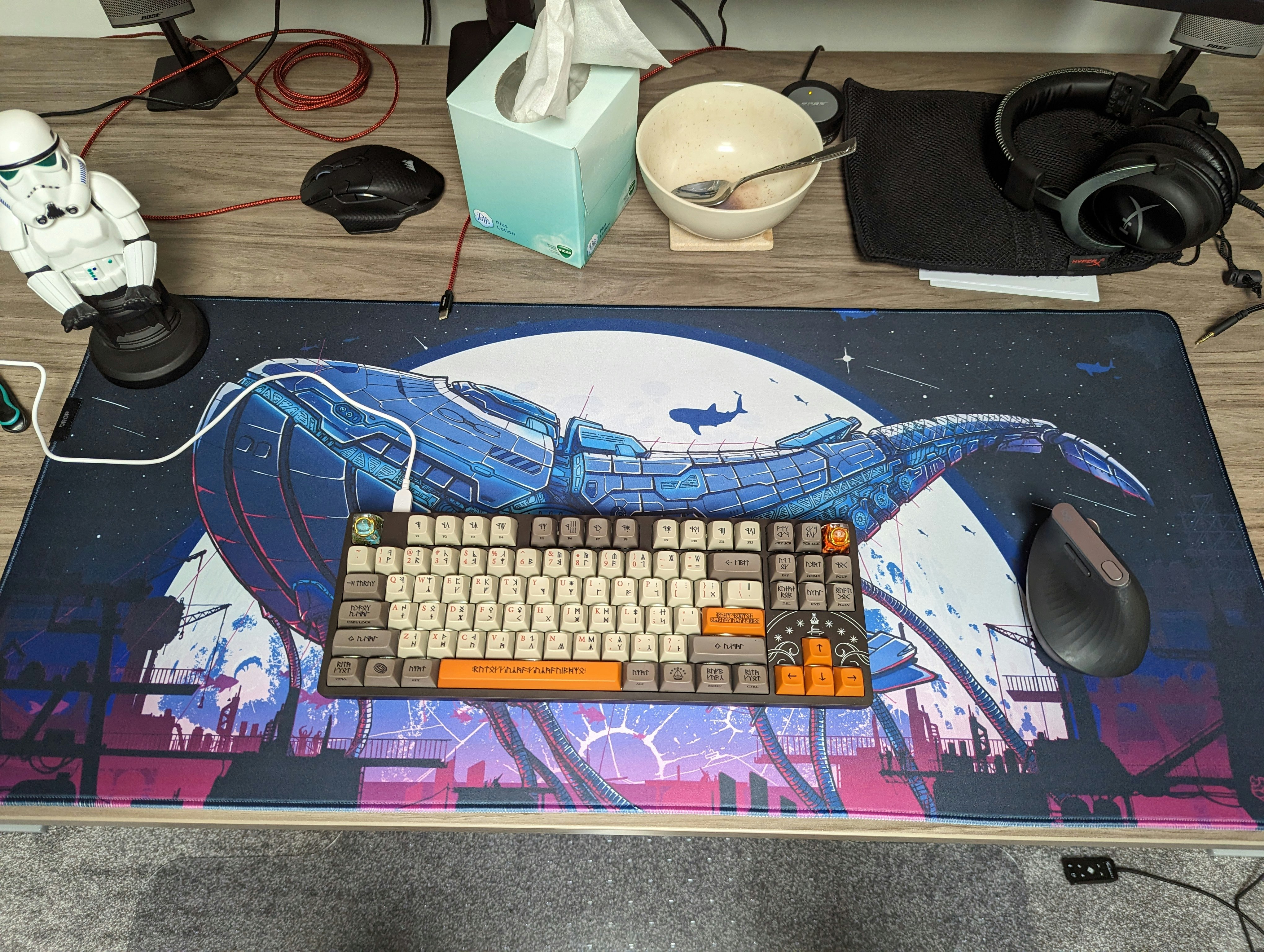 whale deskmat with keyboard