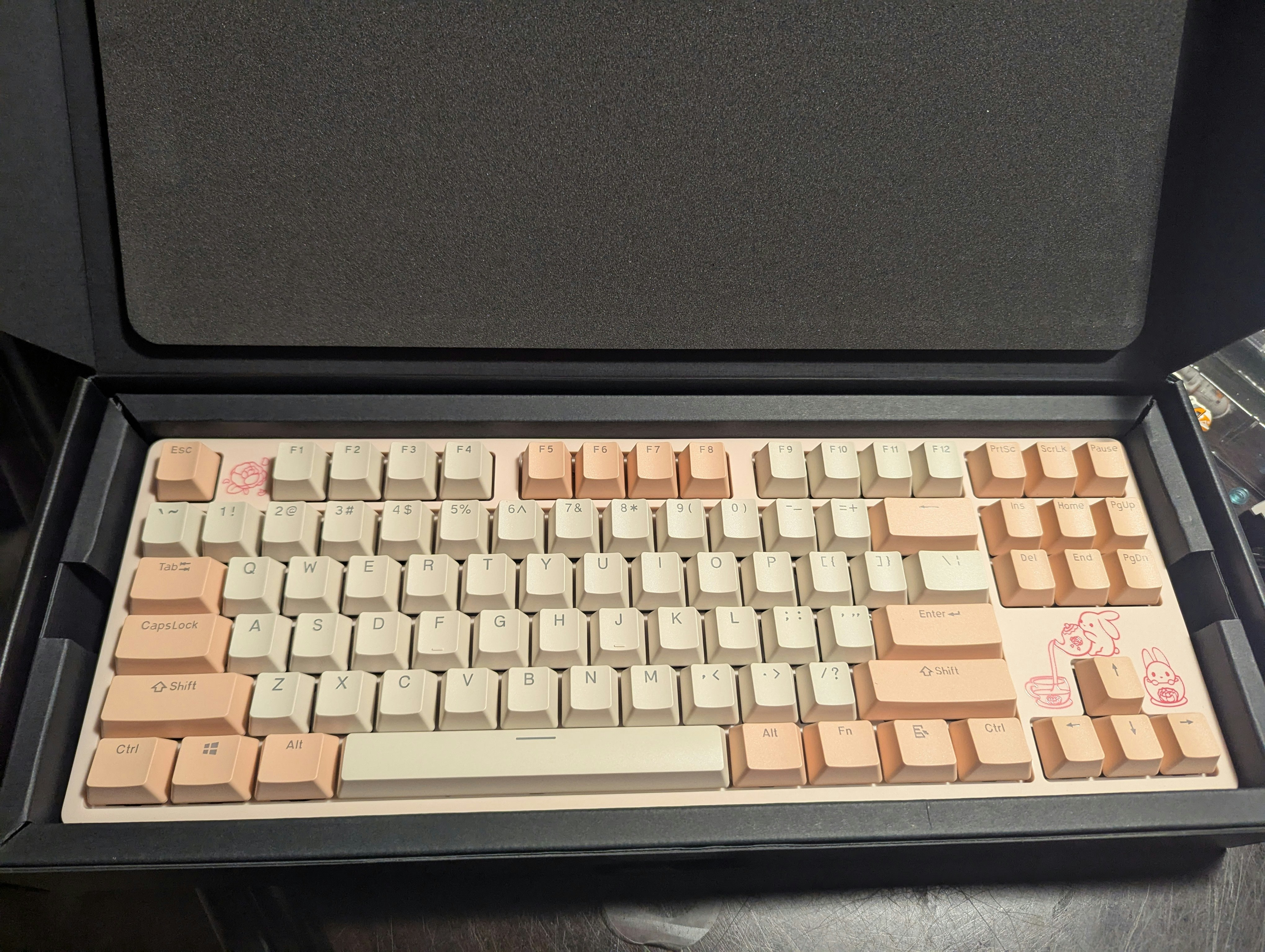 It has a very nice aesthetic with a very nice typing feel. Definitely not a custom grade keyboard but is perfect for those who want a nice keyboard they will never modify.