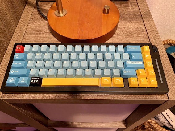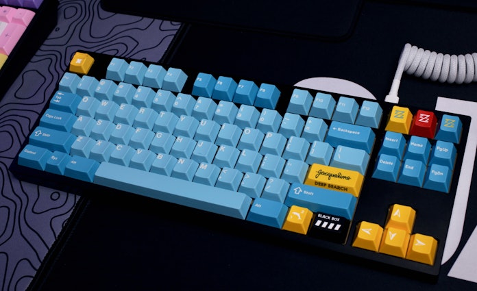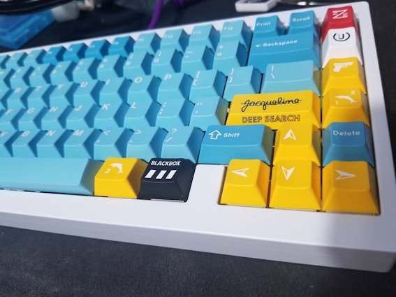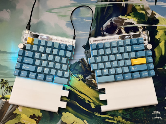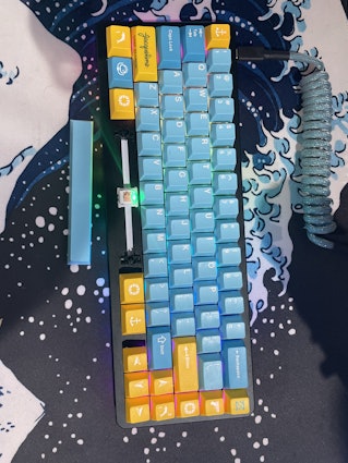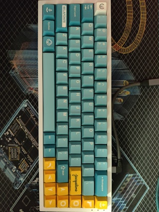 I think the blue and yellow looks really good with my PBT vaporwave set from novelkeys
