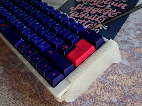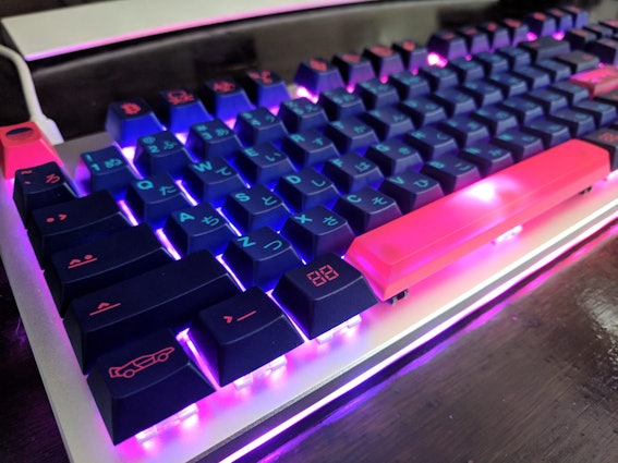 - Literally every key has a visible bump on the back (the side that faces opposite the user) from where it was broken off of the molds, I assume. This would be particularly noticeable on a low-profile keyboard. It's barely visible at a distance, and really doesn't affect me personally as it's on a side of the keycap I basically never look at, but I think some would be bothered by this. And maybe they'd be right to do so if they had also spent $80 on 50-someodd keycaps like I did.