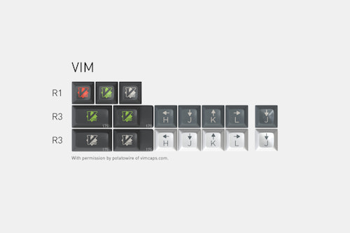 This kit contains add-on keycaps for use with the text editor Vim.