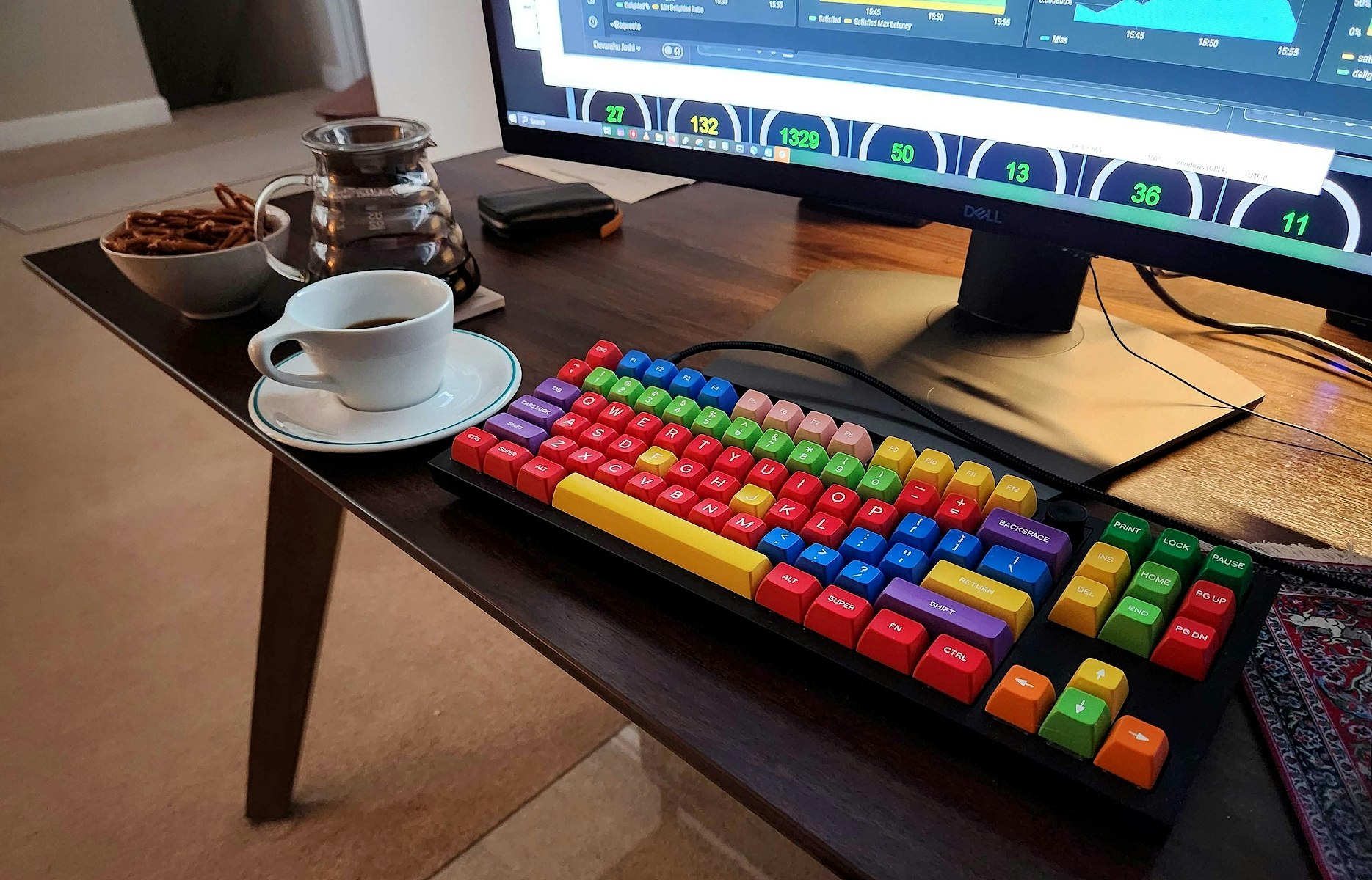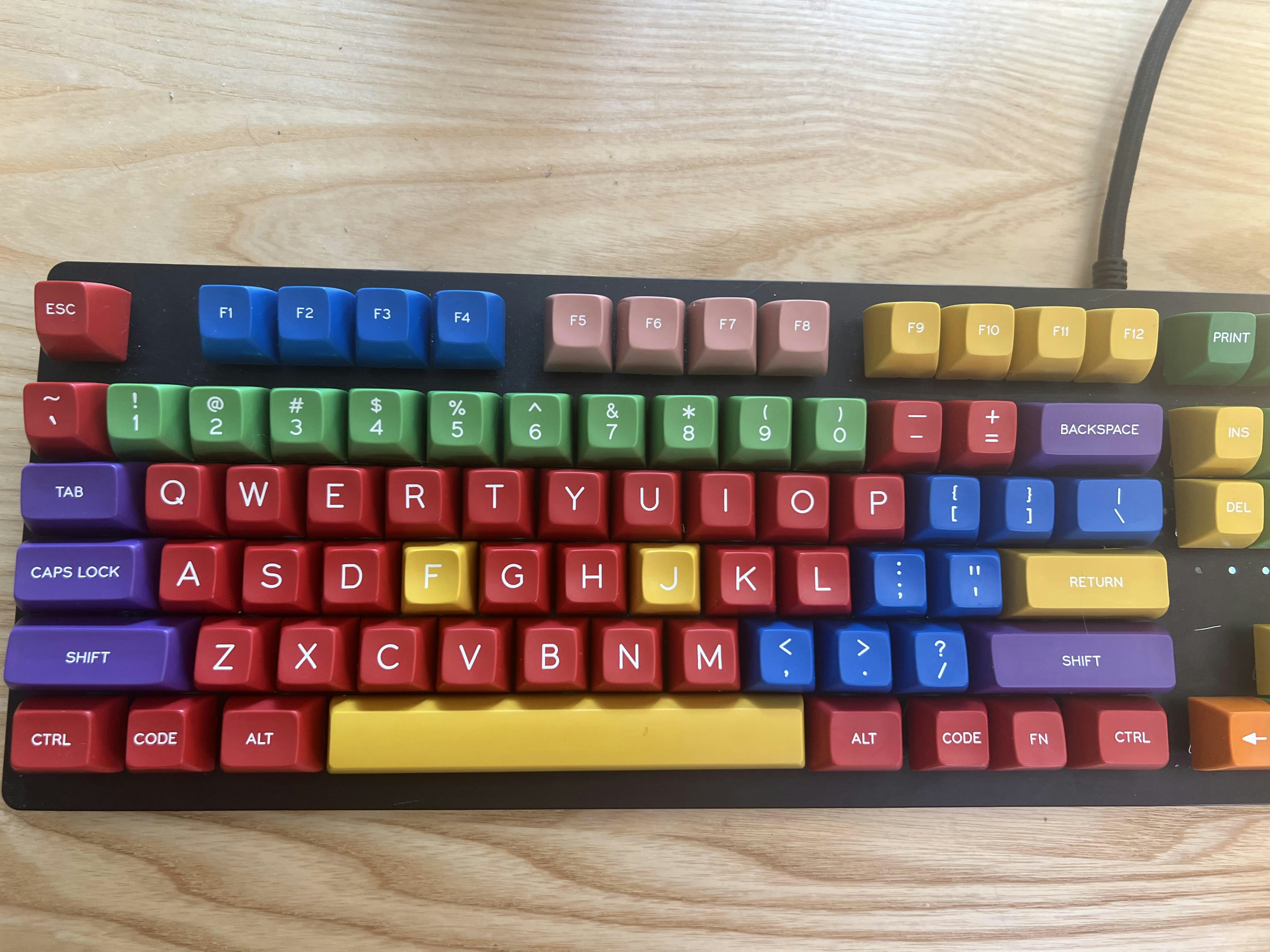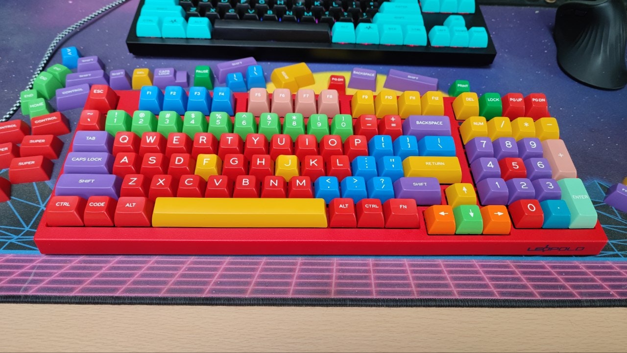 In 1994 today’s vast array of keycap color options was a pipe dream. At the time, keyboard manufacturer Cherry Corp was an industry leader when it came to reproducing colors. To showcase their capabilities, they created two sample keyboards—but little did they know how important they’d become. Meaning “handmade” in German, Handarbeit is a faithful recreation of the colors from the now-iconic piece. Jumping from purple to red, yellow, and blue across a single row, the keycap set comprises bold primary colors that have become legendary in the collector community. Sculpted in tall SA profile, SA Handarbeit is made of doubleshot ABS plastic for a long-lasting construction and comfortable feel.