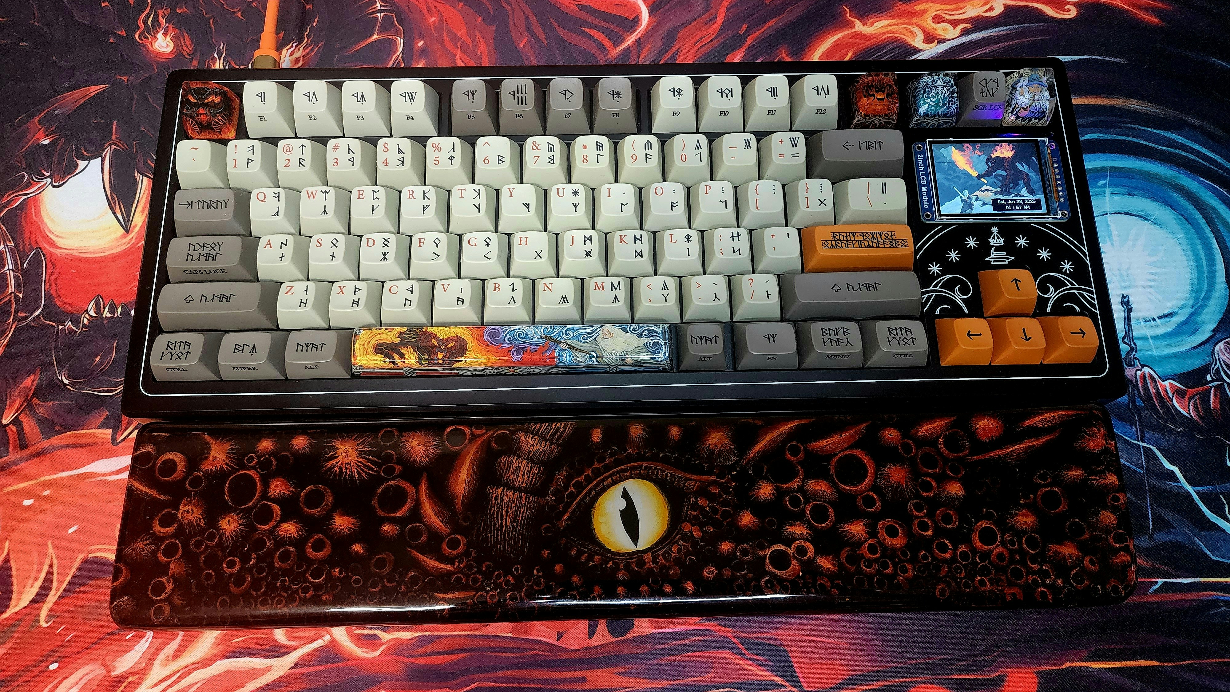 In Middle-earth, there is no bigger hoarder of treasure than the dragon Smaug. For this limited release with The Lord of the Rings—a pair of mesmerizing handcrafted wrist rests—we could think of no better inspiration. Equal parts typing tool and eye-catching jewel, each one is meticulously crafted and vividly colored with handmade attention to detail by our friends at Moon Key. Both are worthy of Smaug’s hoard, and both feature the dragon himself. Plus, each one is shaped with a typing angle between 7 and 9 degrees for optimal comfort. Choose the menacing Eye of Smaug or the ornate Smaug’s Lair to complement your style—and select a 65% or TKL to fit your setup.
