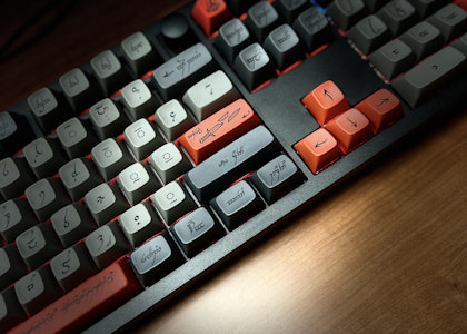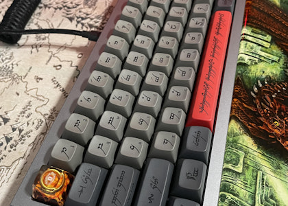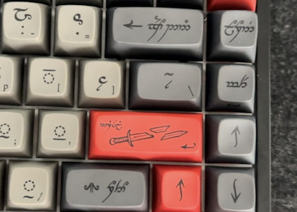 In Middle-earth, even the forces of evil get their own language. In our latest collaboration with Middle-earth Enterprises, that language gets its own keycap set. Brand your board with Drop + The Lord of the Rings MT3 Black Speech: a menacing set of keycaps reserved for the most unruly residents of Mordor. Crafted by Sauron himself, “black speech” is a language without script, spoken only by Orcs, Wraiths, and others loyal to the Dark Lord—and written (seldomly) in the Elvish script Tengwar. That’s how it appears most infamously on The One Ring: in a scrawl that can only be described as sinister. It’s in this style that Matt3o created the legends for MT3 Black Speech, retaining the wording from MT3 Elvish, but rendering it in a twisted font befitting of Middle-earth’s most evil tongue. Also changed is the spacebar, which now features The One Ring’s inscription in full. Made from durable, dye-sublimated PBT and finished in an ashen black-and-gray colorway, MT3 Black Speech is available in a wide range of novelty-filled kits—including both Training and Hardcore variants—to bring any setup into shadow.