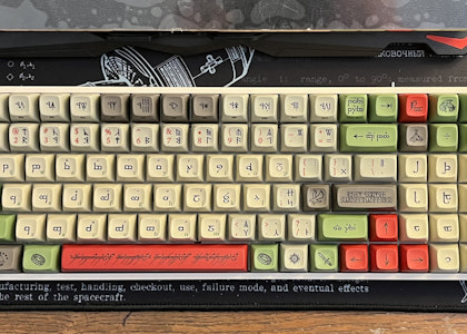 This kit fits both Preonic and Planck keyboards, as well as many other ortholinear layouts. The alpha legends have Latin sublegends and modifiers have side-print Latin legends.