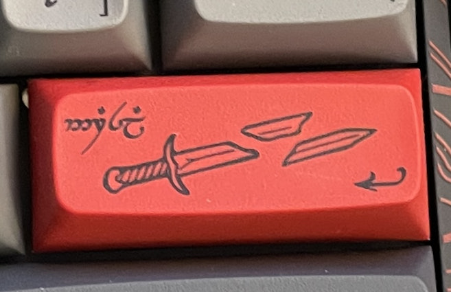 The red Enter key with the Shards of Narsil actually says "NARSAL" and not NARSIL. Oops.