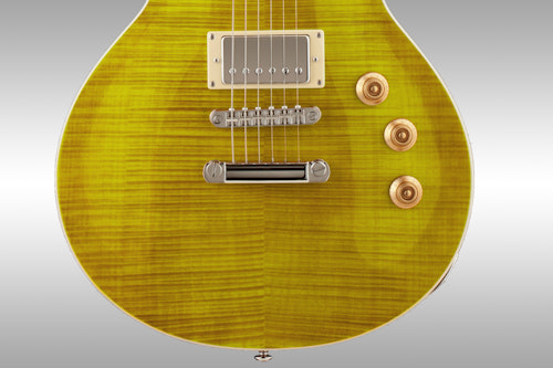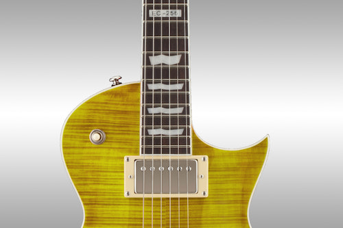 Along with diecast tuners and a tune-o-matic bridge and tailpiece, the Lemon Drop features a pair of powerful ESP pickups with a three-way toggle switch, independent volume controls for each pickup, and one master tone control with a push-pull coil split.