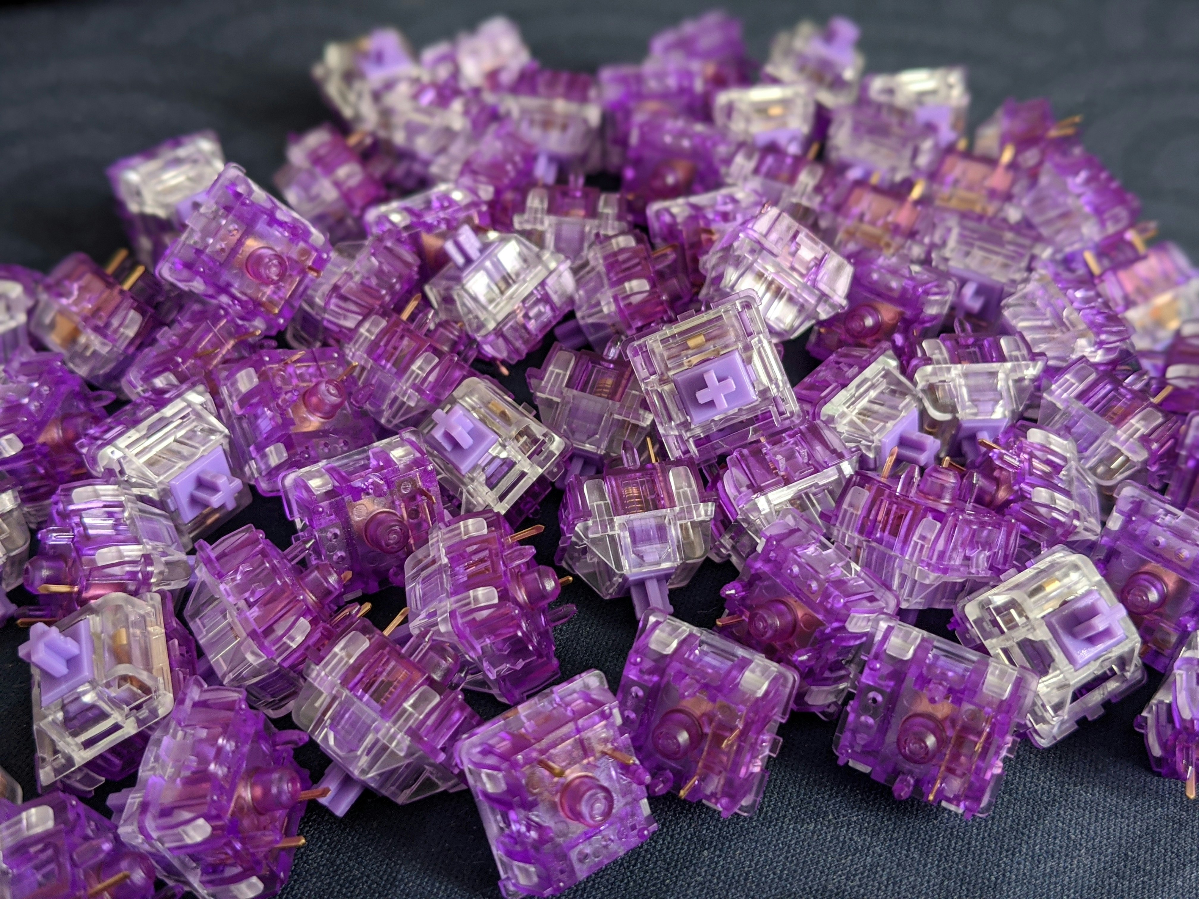With a round tactile bump similar to v2 Zealios or Holy Panda switches, the Everglide Crystal Violet custom mechanical switches offer a satisfying typing experience for hours on end. Rated for 50 million presses, they have a clear purple ABS plastic housing and a violet stem. The initial force of 45 grams provides a welcome tactile threshold to overcome for a nice feel. Available in packs of 70 or 110, these switches will elevate any board you put them in.