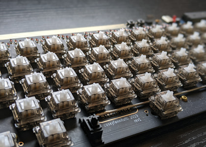 With a crisp and responsive tactile bump at the top and a cushy feeling when bottoming out, the Everglide Oreo mechanical switches are a joy to type on. Rated for 50 million presses, Oreos have a smokey housing and clear stems for a sweet two-toned look. For keyboard PCBs with two extra holes near the center post, these switches will add extra rigidity to your build; for keyboards PCBs without the extra holes, simply cut the small plastic legs off and make the switches plate-mounted.