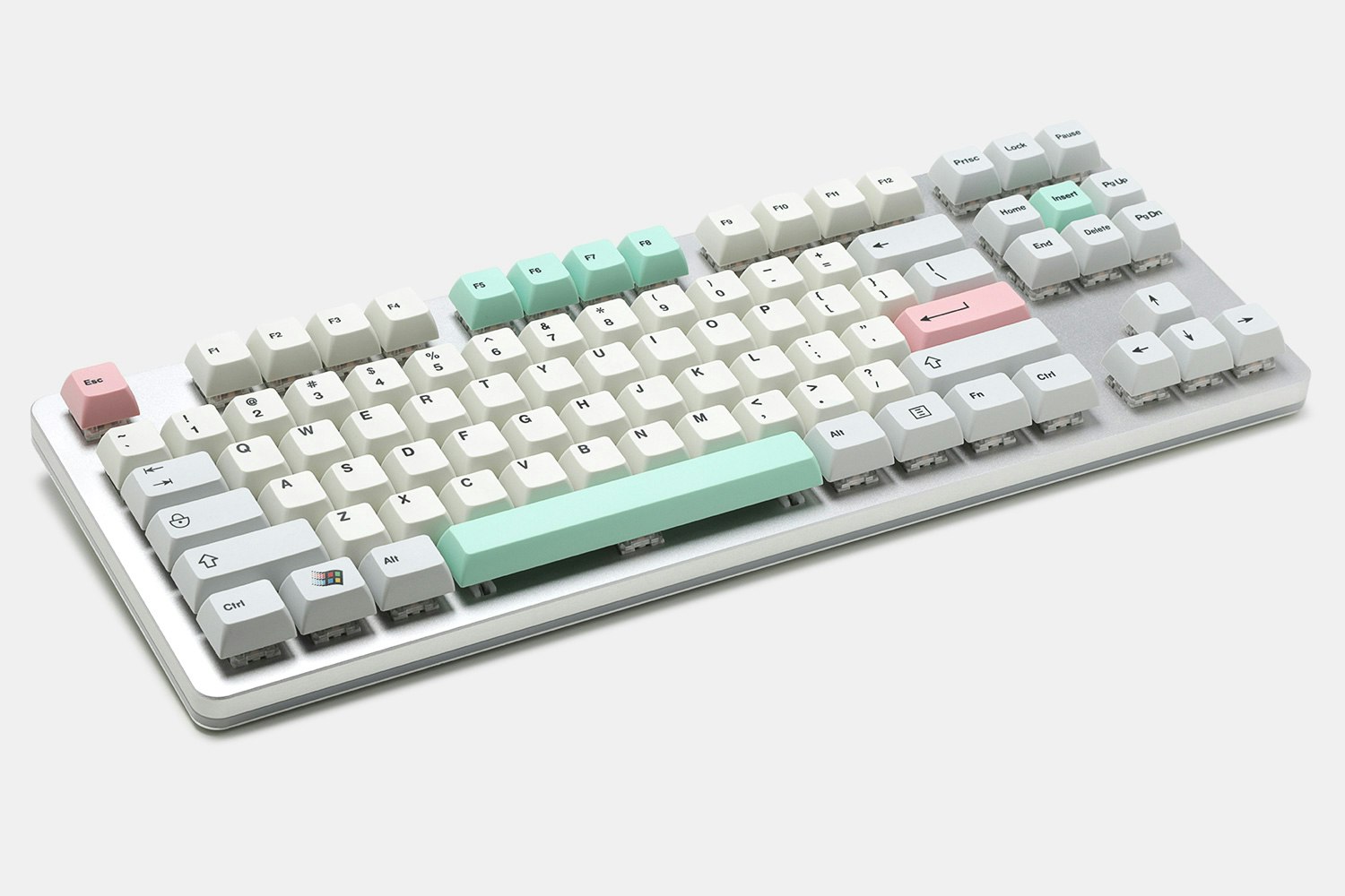 Full of retro vibes, the Everglide 9009 keycap set can transport your desktop to another time. This full set of PBT keycaps combines beige and gray alphas and mods with some colorful extras to spice things up. There are salmon-colored spacebars, mint-colored F keys, and a host of other modifiers to inspire your favorite board. Compatible with Cherry MX switches and clones, the keycaps feature dye-sublimated legends that won’t fade over time.