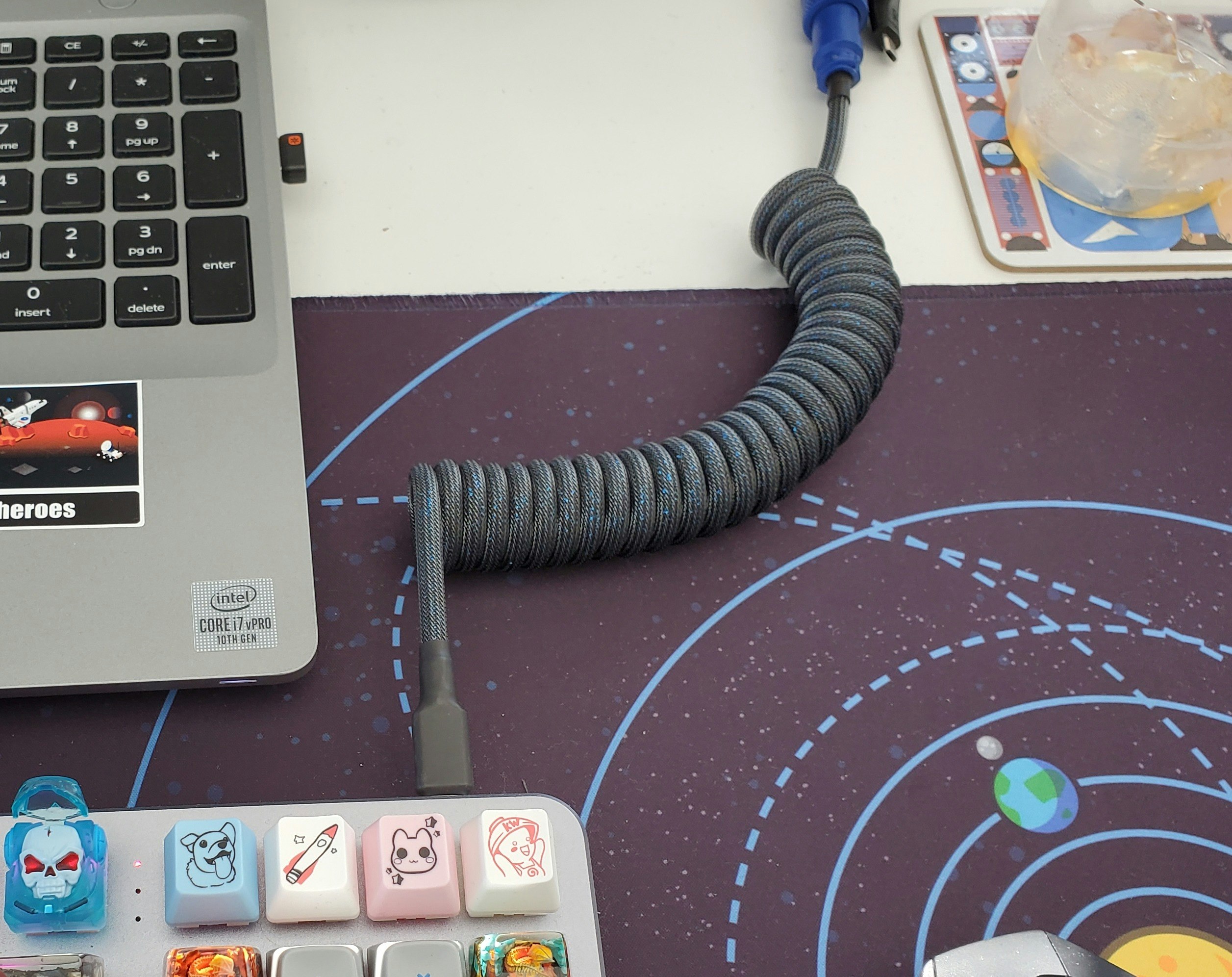A good mix of old coil style keyboard cable with quality of a braided cable.