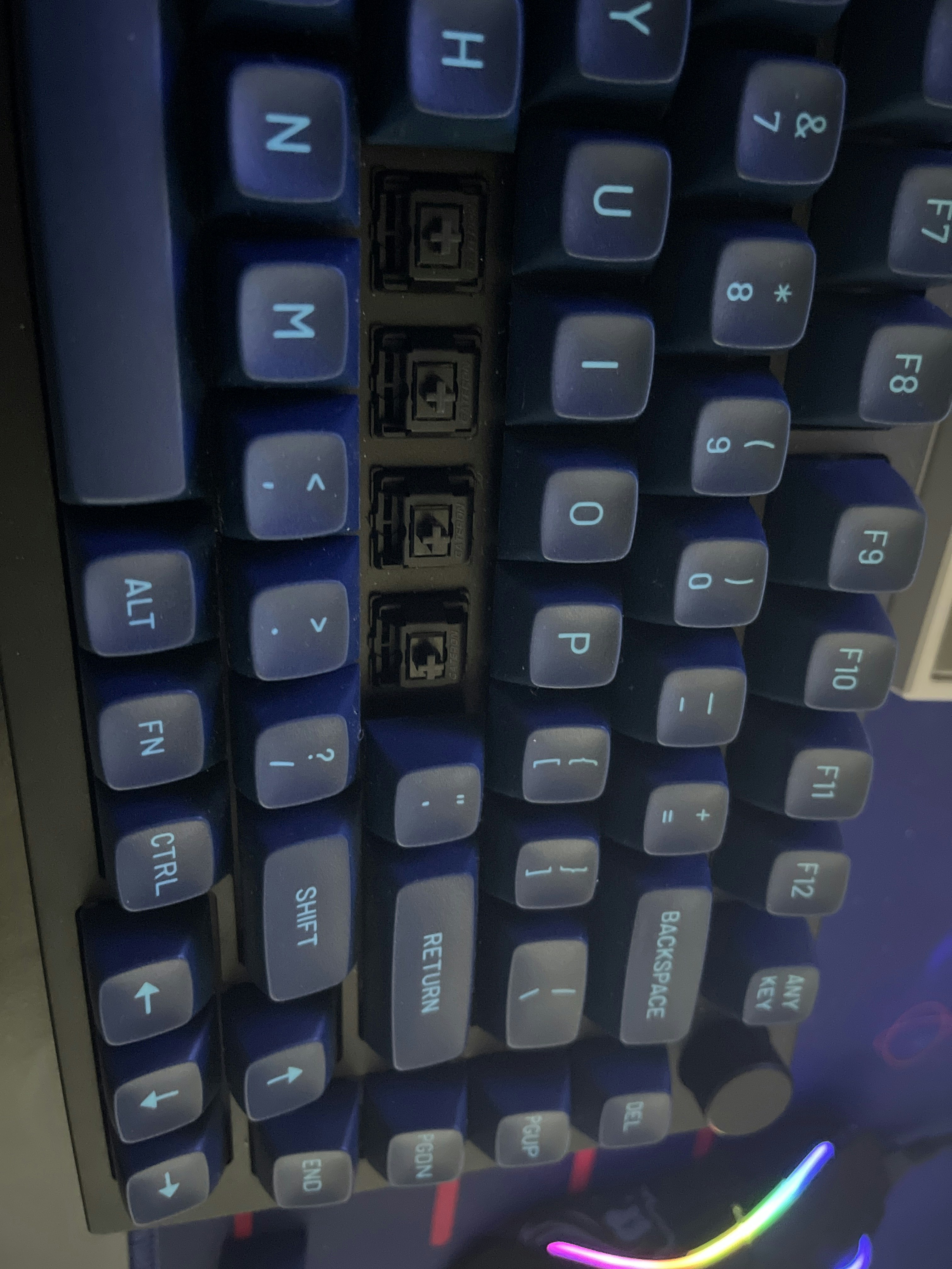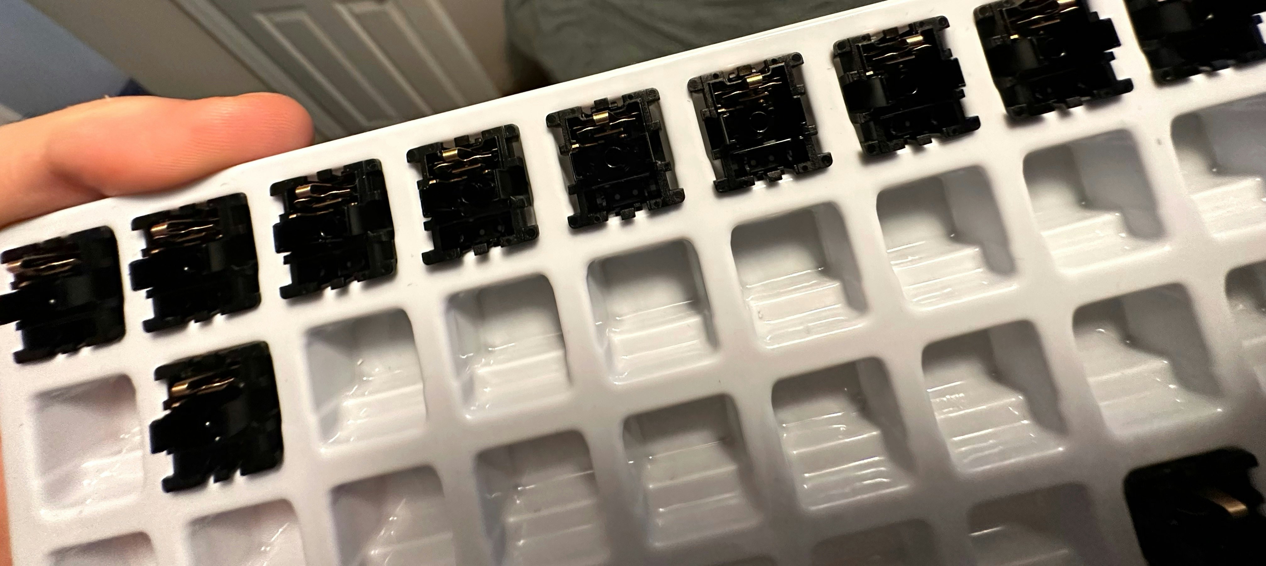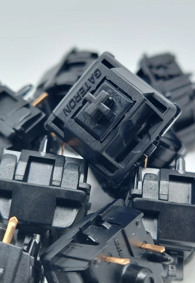 The Gateron Oil King Linear Switches are so-named because they offer a thorough, thematic approach to factory lubrication. Gateron’s clear goal with the Oil King switches is to provide smooth, linear action right out of the box—that complements their moderate-to-heavy 55-gram actuation force—thanks to uncommon attention to detail when lubing the housing and stem at the factory. Then there’s the inky black color, further underscoring the smooth, viscous quality of the switches. The housings are made from PA66 Nylon for excellent sound and feel, while the stem uses a POM construction for stability and familiar action. There’s even a 22-millimeter color-matched black spring to bring the oil theme to the inside of the switch.