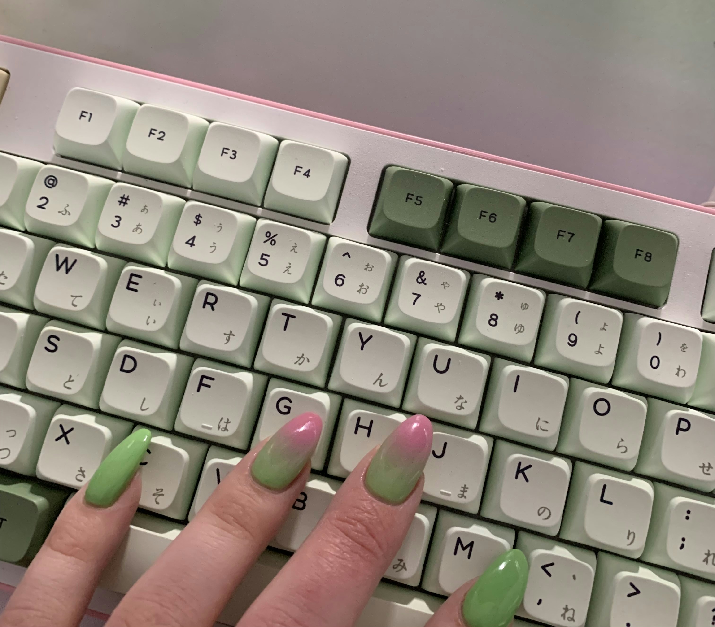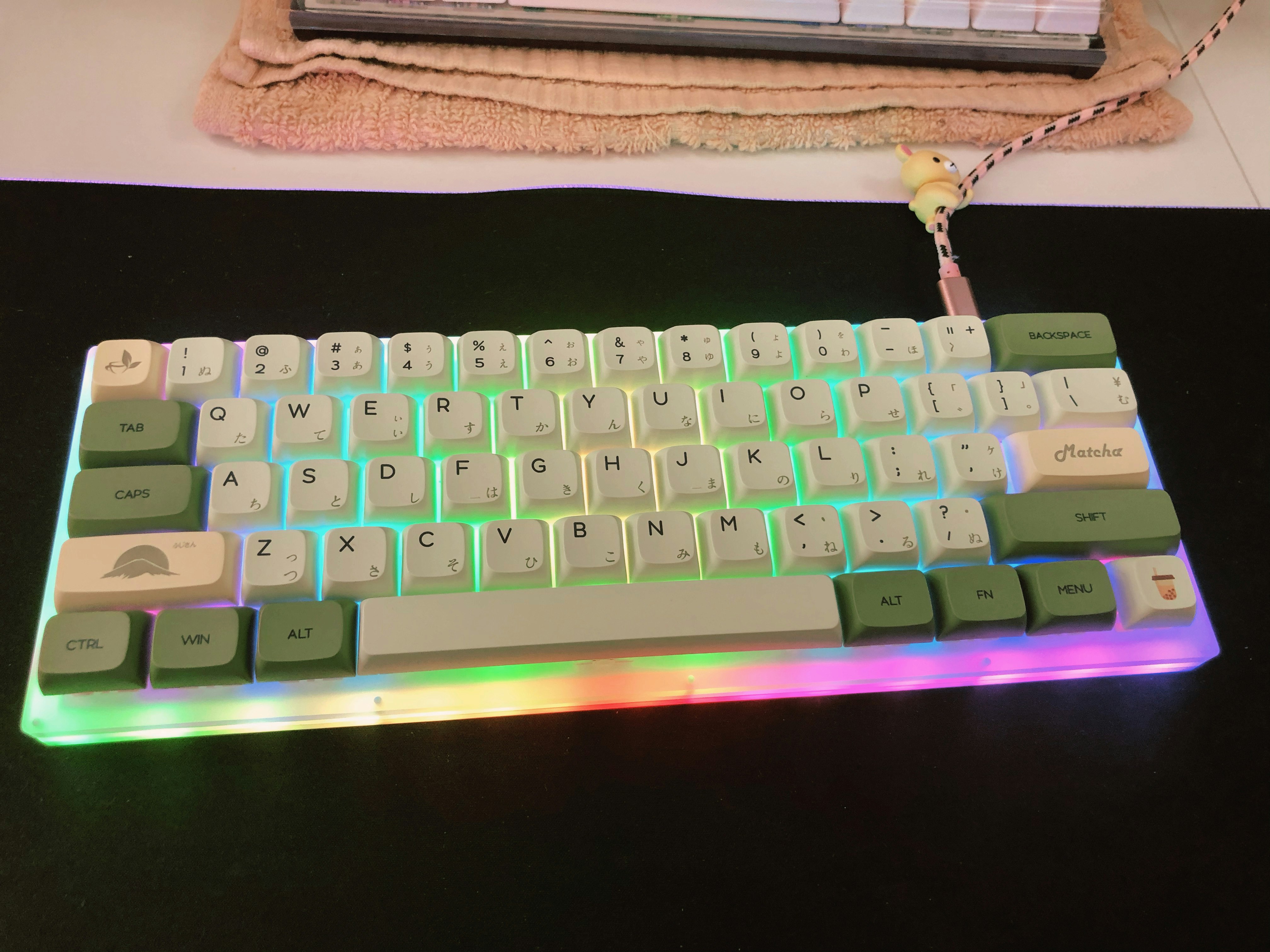 Matcha keycap on wooden keyboard