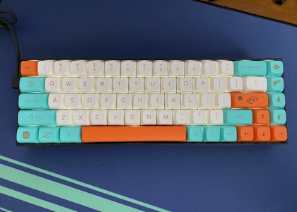 Ready to crash land on your keyboard, the GKs XDA V2 Happy Planet Keycap set showcases whimsical colors and spacey designs with plenty of alien appeal. The alpha keys are set in a clean white with orange legends, while the same orange features as the primary color on the arrow, spacebar, and escape keys. The modifiers feature a sci-fi-esque turquoise color to give the Happy Planet some life. They’re also home to a number of novelties, including planets, asteroids, and more celestial icons. The PBT used for these keys is a sturdy 1.4 millimeters thick, and the XDA V2 profile is slightly higher than the original XDA profile—offering a satisfying feel with a striking look. As inhabitable as it is eye-catching, the Happy Planet Keycap Set is compatible with Cherry MX switches and clones to fit almost any board.