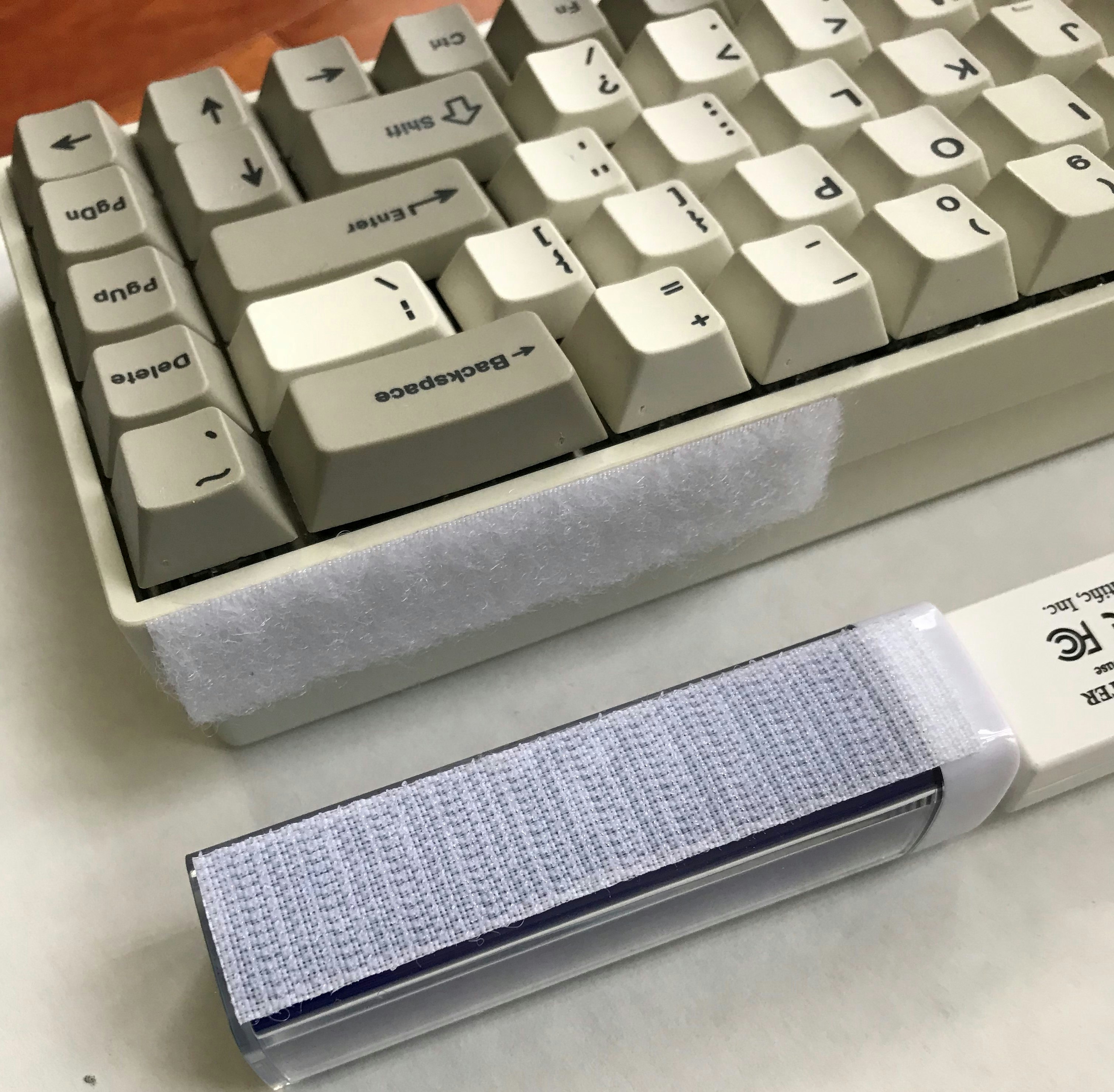 A customer sent two pictures to show how he attached the power bank with BT-500 to the side of his keyboard using Velcro. This power bank is very common (one 18650 cell).