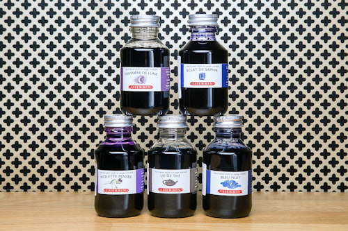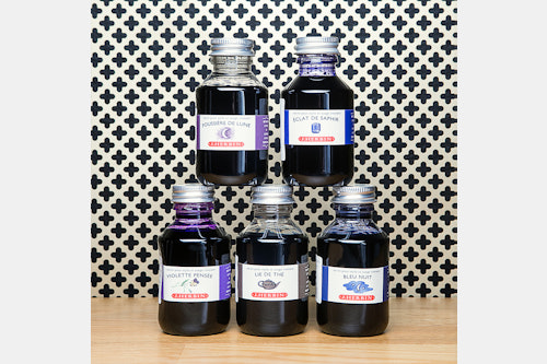 Note: You will receive two plastic 100-ml bottles of ink in your choice of the following colors: Bleu Nuit, Eclat de Saphir, Lie de The, Perle Noir, Poussiere de Lune, or Violette Pensée. At checkout, you’ll have the option of adding an InkJournal to your purchase (+ $16).