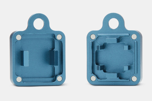 Like a little metal briefcase on your keychain, this two-in-one aluminum switch opener goes anywhere you go in style. Secured by magnets, it has two sides: one for Cherry MX switches, the other for Kailh BOX switches. To open a switch, just press it into the prongs on the corresponding side and watch as it opens up.
