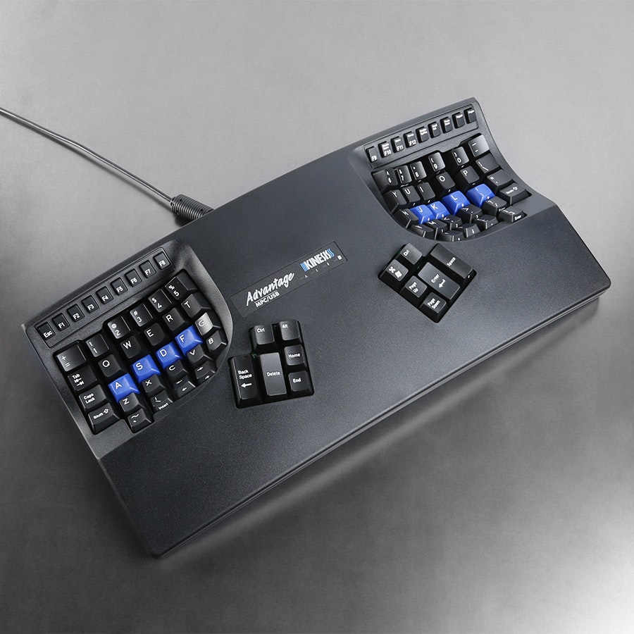 There is more to the Advantage than just a sleek ergonomic design. Customize the Advantage to your exact specifications using powerful on-board programming. Remap individual keys, program macros or switch to Dvorak layout, all without installing any software. Up to 24 long macros can be programmed and stored in the keyboard’s on-board memory and a traditional 10-key is embedded into the right key well which can be accessed with an optional footswitch.