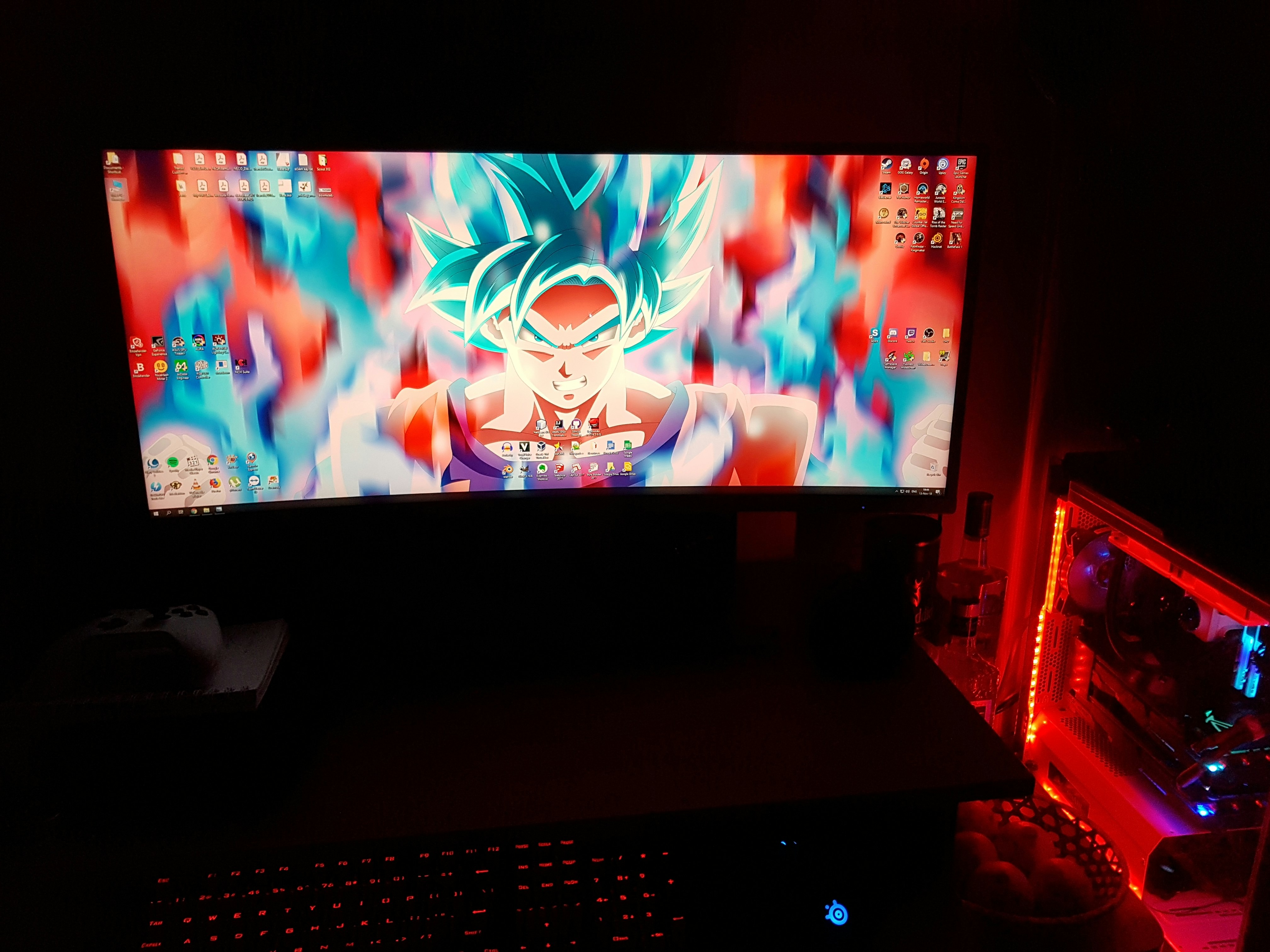 Here at Massdrop, we love to game—and we know that many of our members do, too. We also know that gamers can be tough to please, so our first venture into gaming panels had to be top notch. Introducing the Massdrop Vast Curved Gaming Monitor. Measuring 35 inches from corner to corner, this ultra-wide HD monitor boasts a resolution of 3440 x 1440p, a 2-millisecond response time, FreeSync technology, and a refresh rate of 100 hertz. All this makes for a seamless visual experience when gaming, working, watching a movie, or simply browsing. Thanks to the strong 1800R curvature, anywhere you look on the monitor is a sweet spot. And with a static contrast ratio of 2,500 to 1, the monitor displays super deep blacks and vibrant colors to bring out the best in every scene.