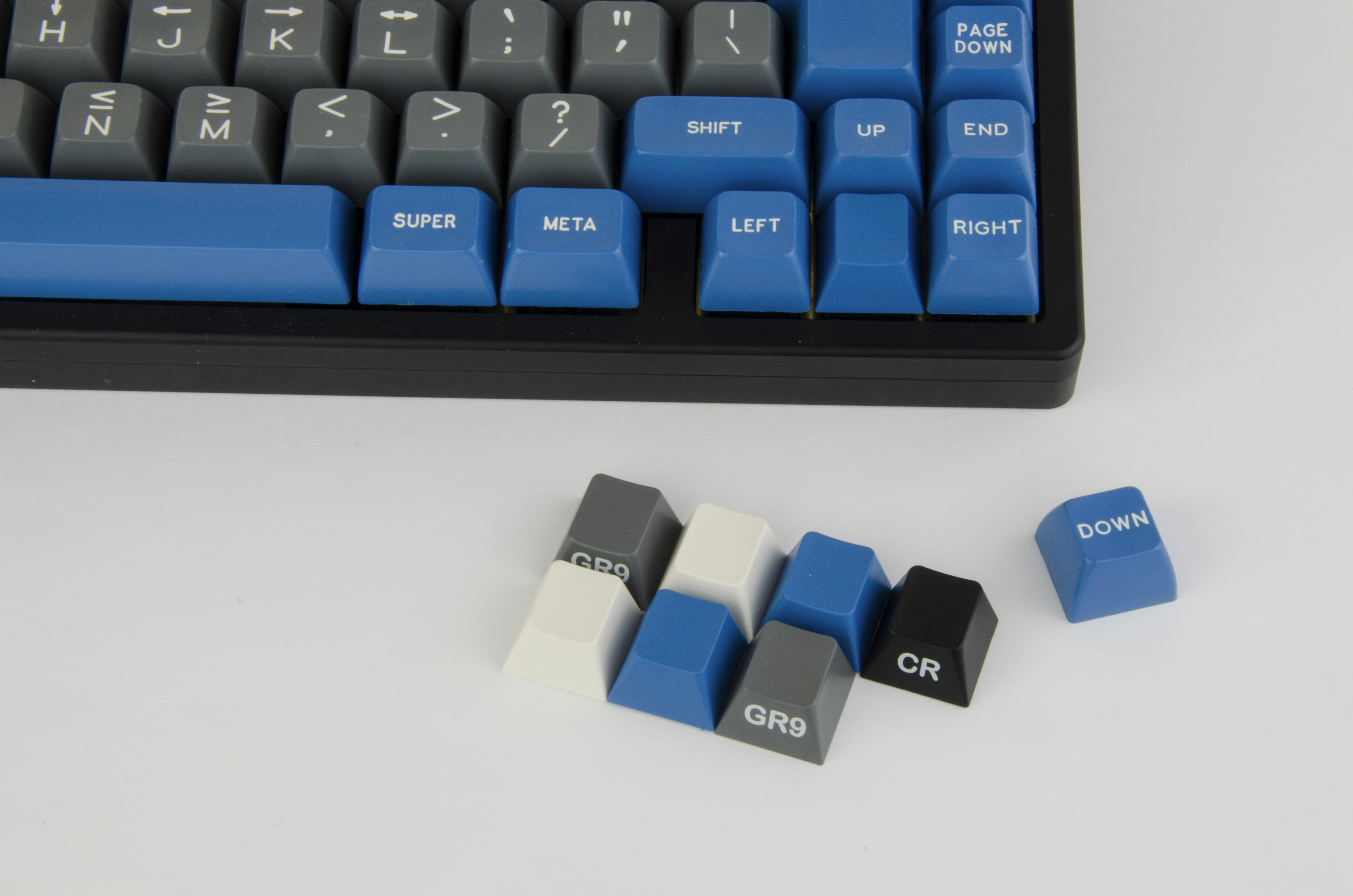 To pay closer tribute to the original Space Cadet design by Tom Knight, the True Cadet kit allows you to decorate the bottom rows of your keyboard with black legend modifiers, along with the blue spacebars to wrap your alphas in all blue.