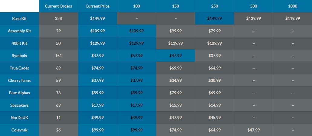 For my fellow Europeans, we have a NorDeUK kit that covers the most popular layouts of this continent. Due to this kit often struggling with minimum order quantities, I am only going to offer it in gray, as the performance of the blue alphas is still unknown.