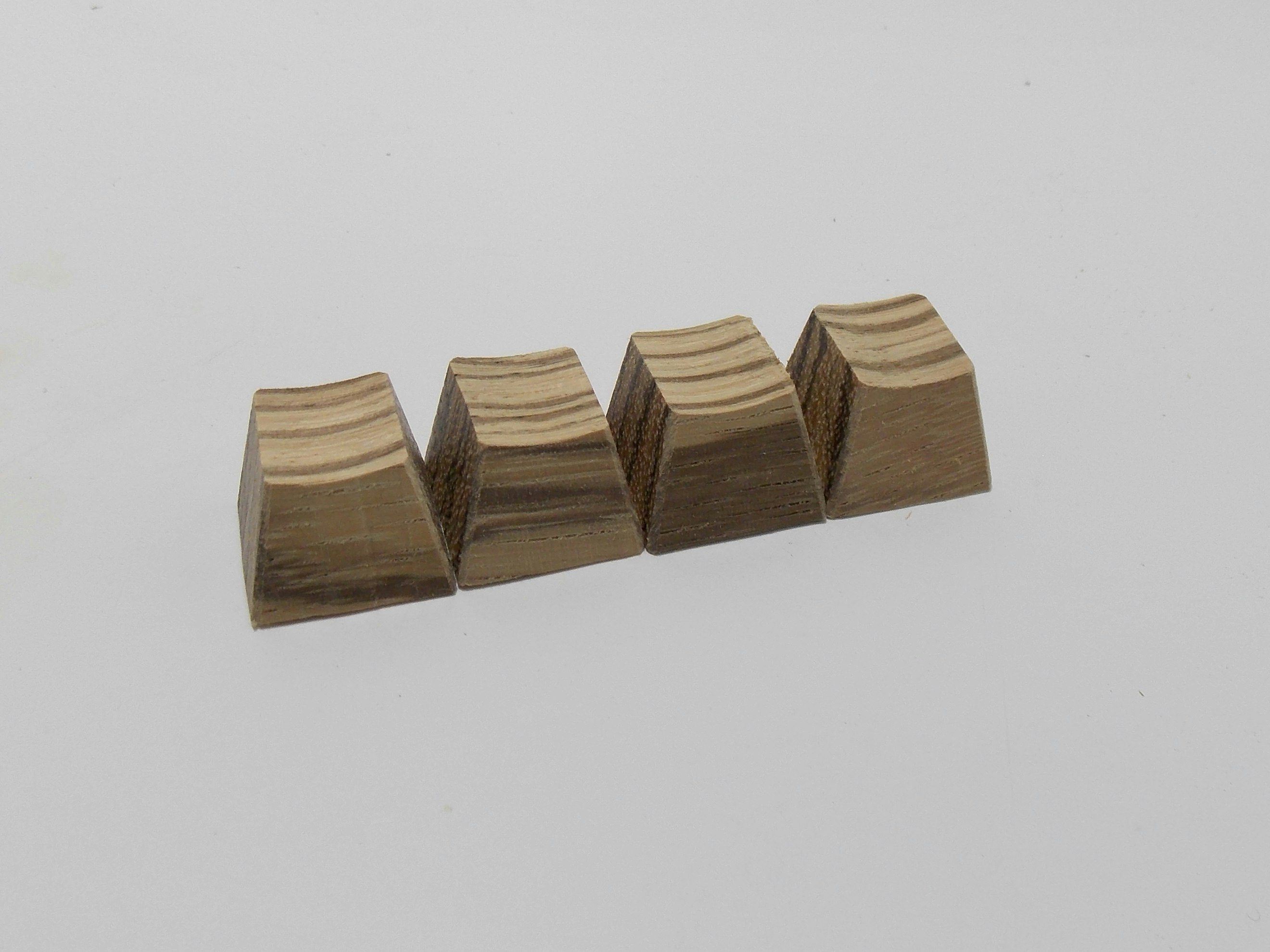 Some of you have expressed some concerns with the caps you received. These keycaps went through the same steps as in the past: CNC, bandsaw cuts, sanding, and finishing as all the previous orders. This process is the same as the samples shown. In fact, the profiling/curve process on the Zebrawood keycaps was improved slightly from the photographs shown by using a new sanding jig that makes the profile smoother and more accurate due to feedback received during the drop.