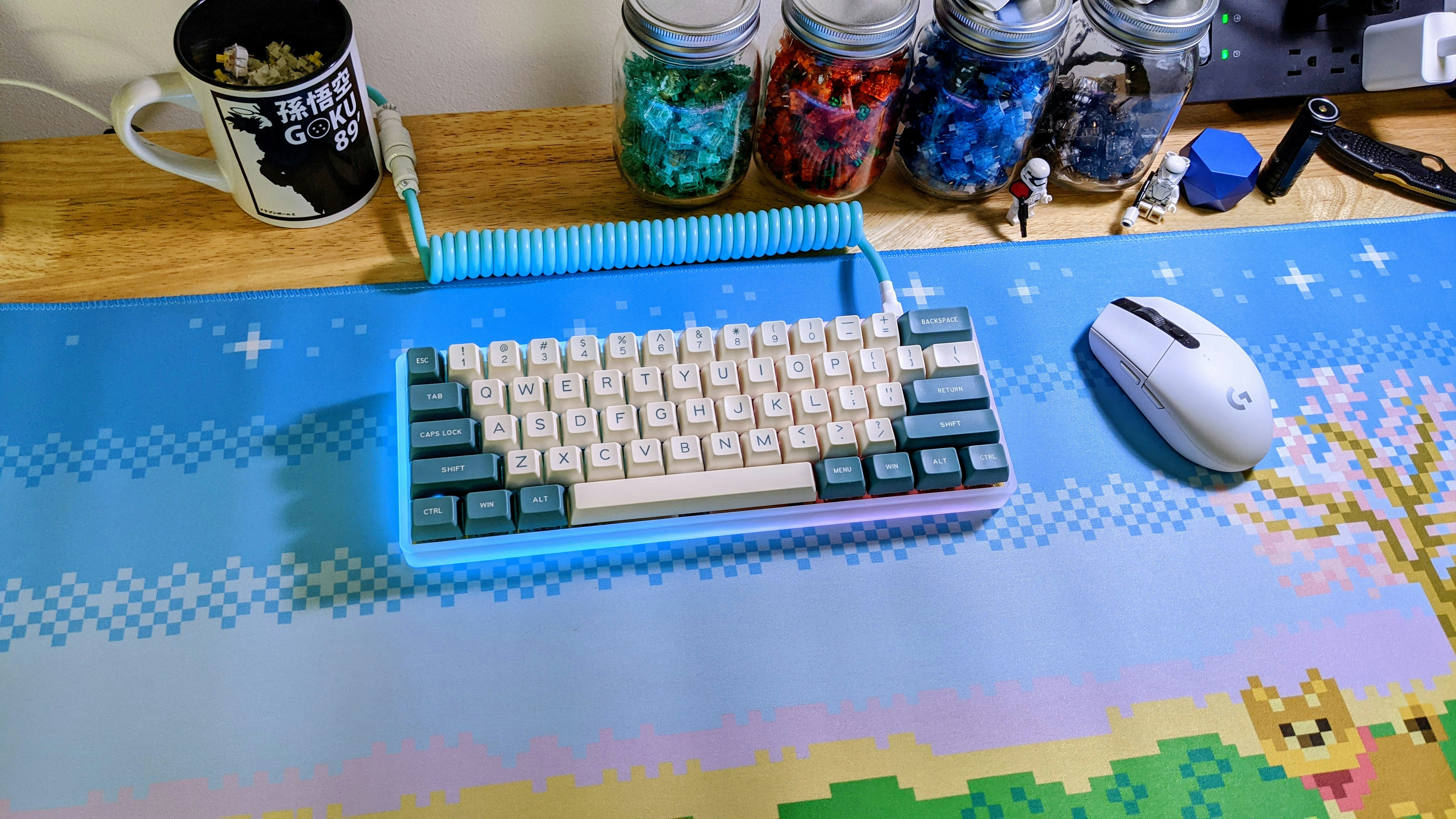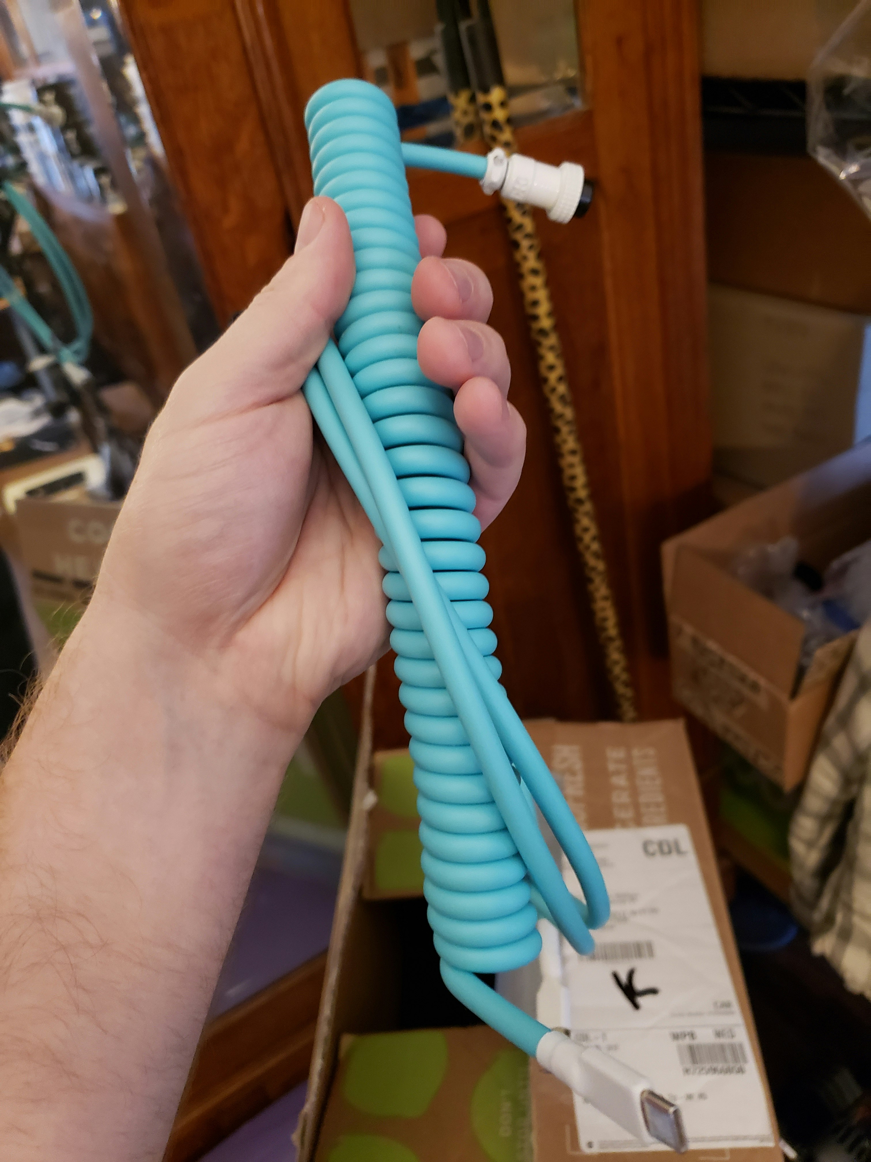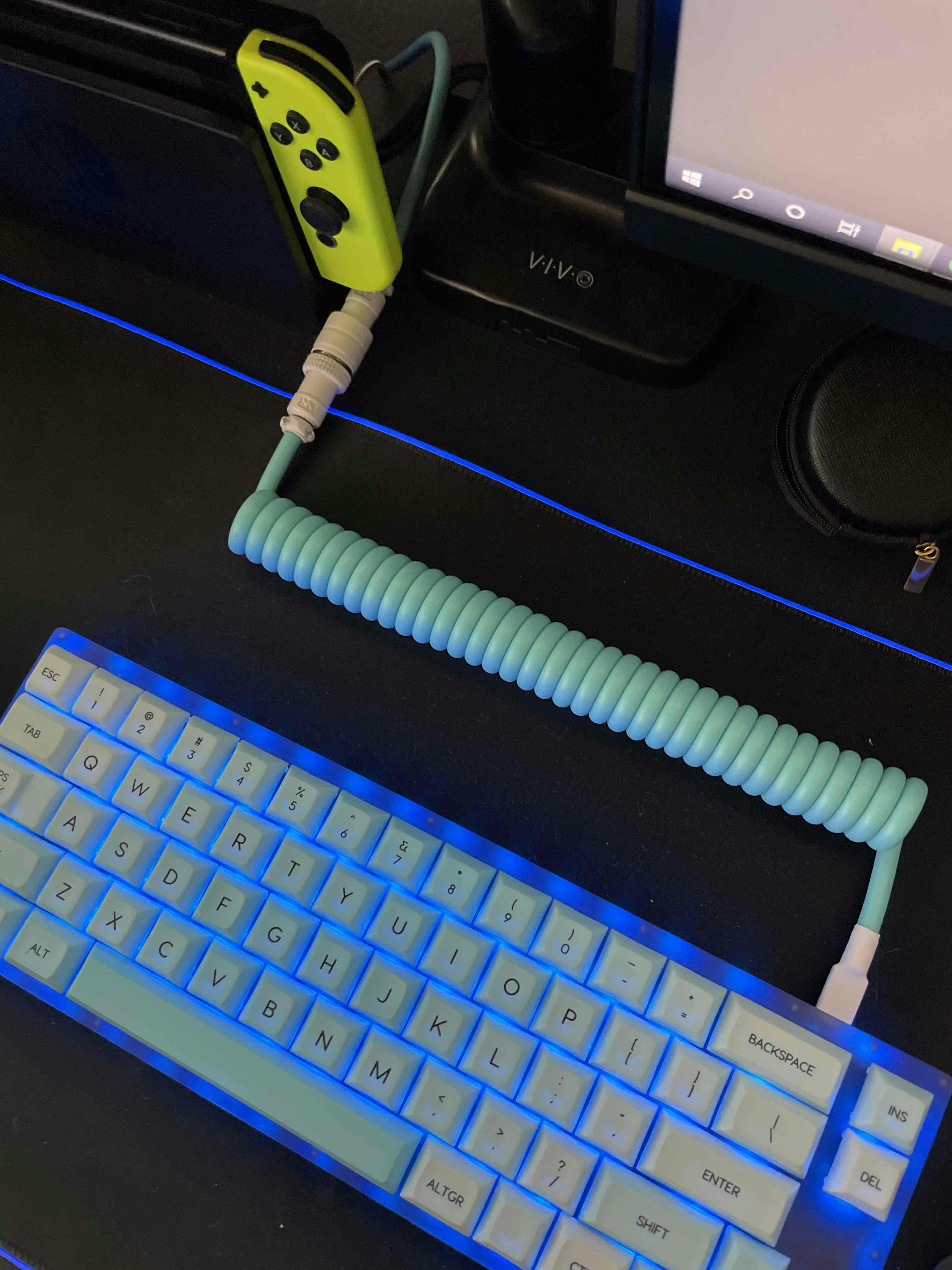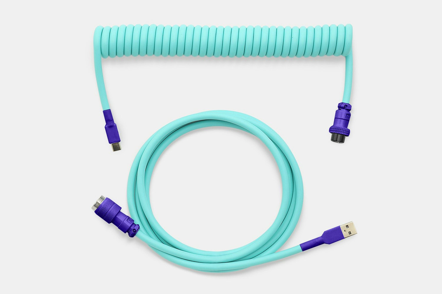 A modern classic, seafoam is one colorway that pops no matter where you put it. Whether you’re looking to match your keyboard or simply keep track of its cord, the Seafoam Custom Coiled Aviator USB Cable from Mechcables is an excellent choice. Outfitted with a matte TPU outer jacket in a stunning seafoam green, this cable can be seen from anywhere in the room. Made in the USA, it features a large coil design with durable 24-AWG shielded inner wires. To accommodate ever-changing setups, it comes equipped with an aviator plug in either purple or white. Order your preferred connection type and cable length to get started right out of the box.
