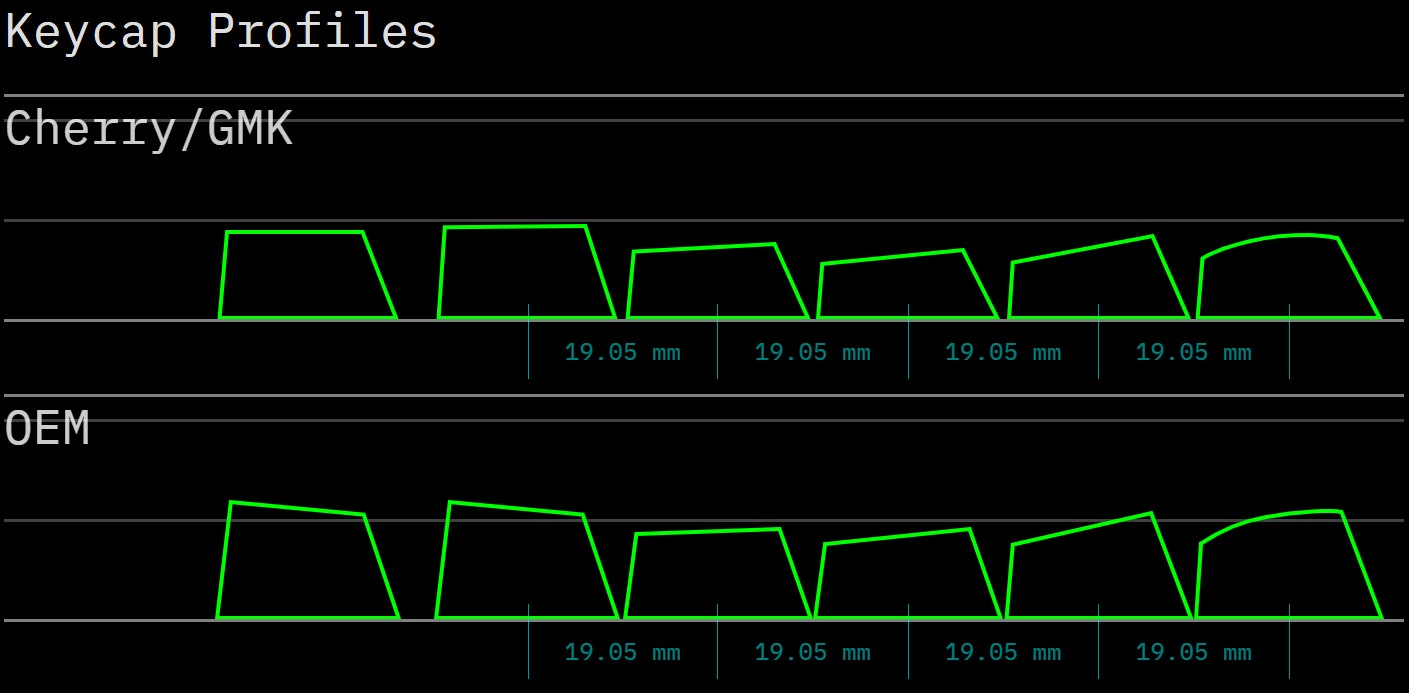 In the product image, the bottom ≈1 mm of the keycaps taper off, a characteristic most commonly found on OEM profile keycaps. Cherry profile keycaps tend to end abruptly: