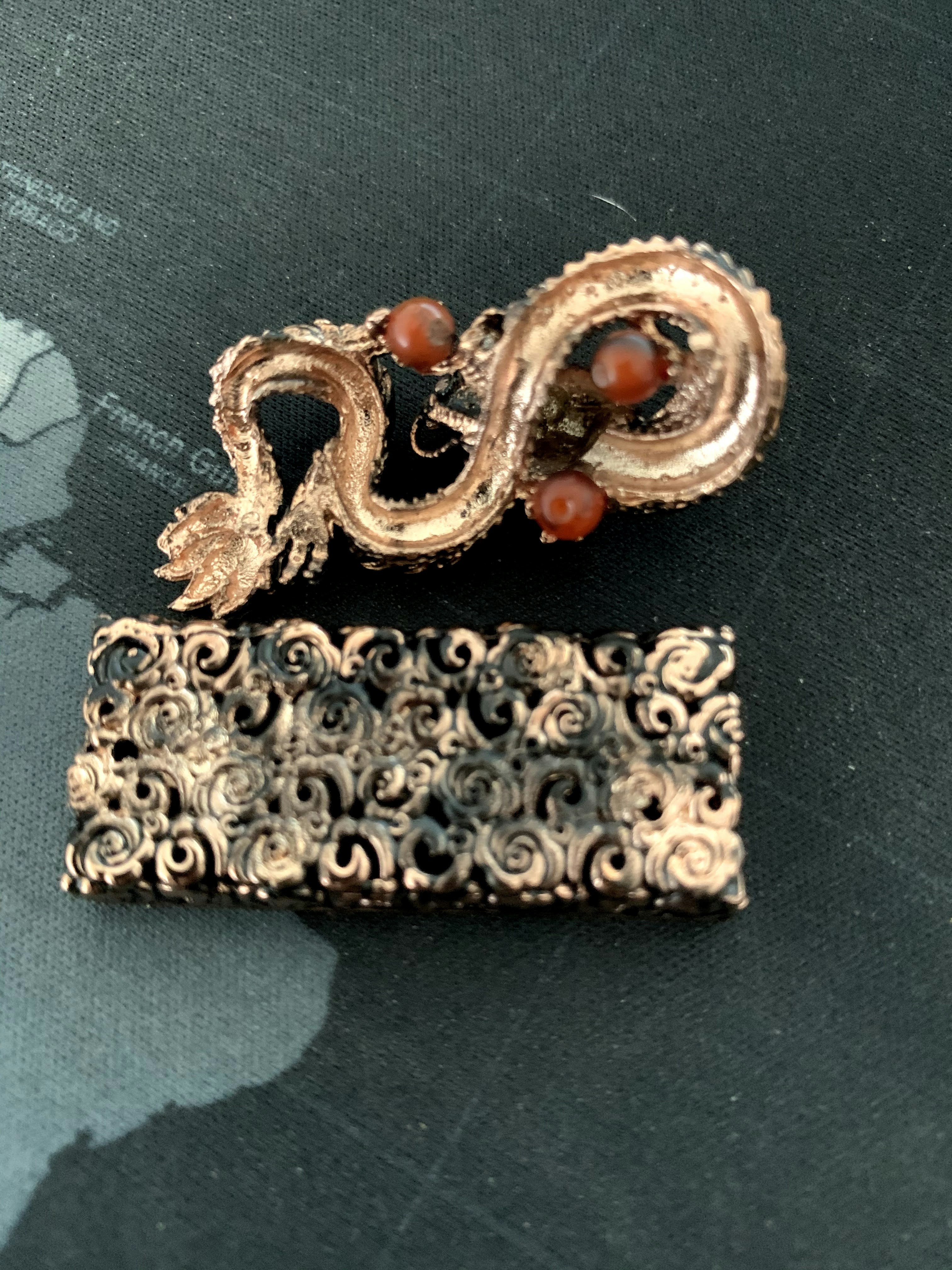 i've got this incense boat thing made of the same stuff, with a similar dragon motif. i've had to epoxy-back its head in 3 different places along its neck, and its wing once. it breaks in a new place every time!