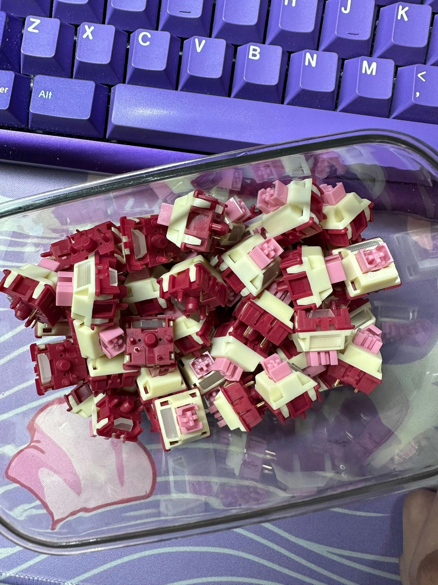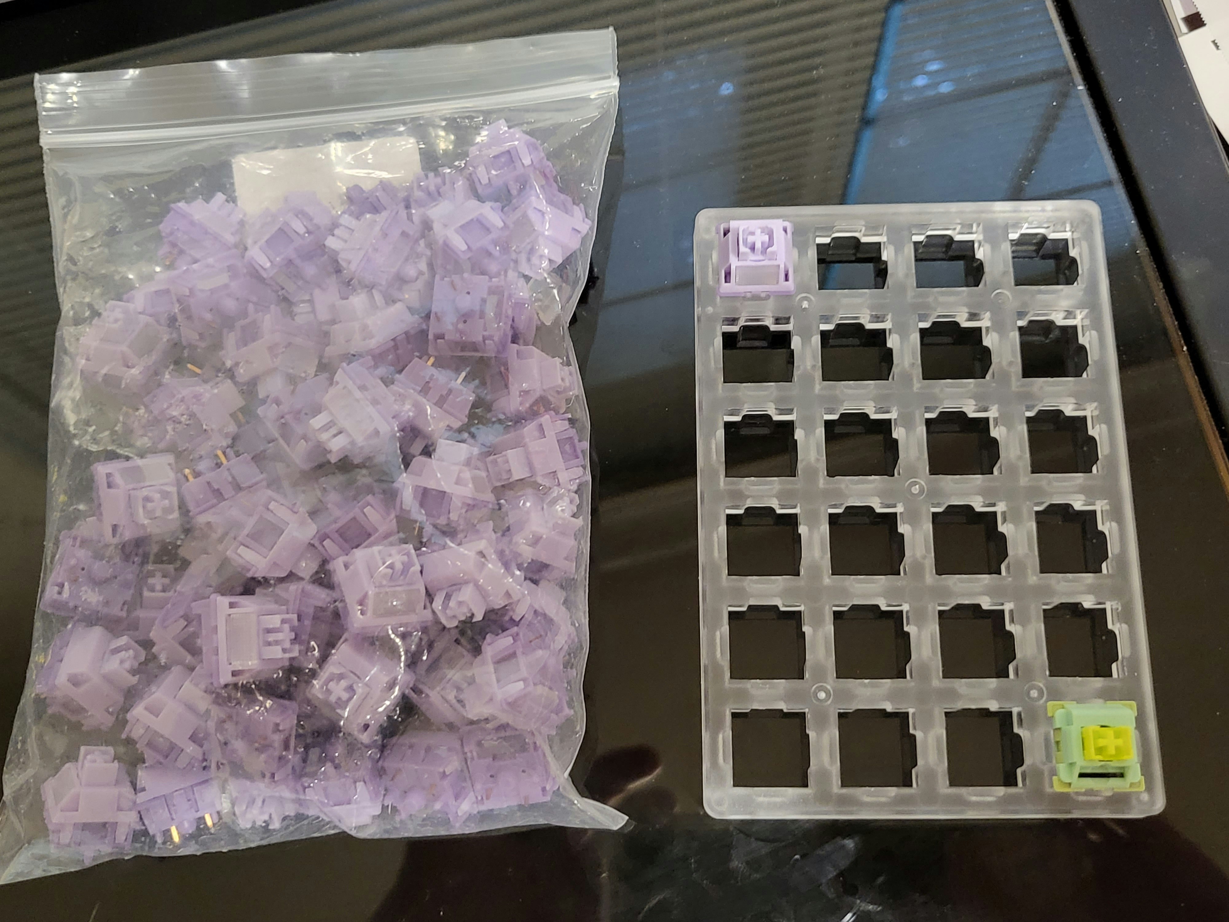 Waiting on the board and caps to arrive, but I compared it side-by-side with my most recent switch purchase, the Redragon Bullet-QT silent tactiles. The new purple switches are nice and heavy...