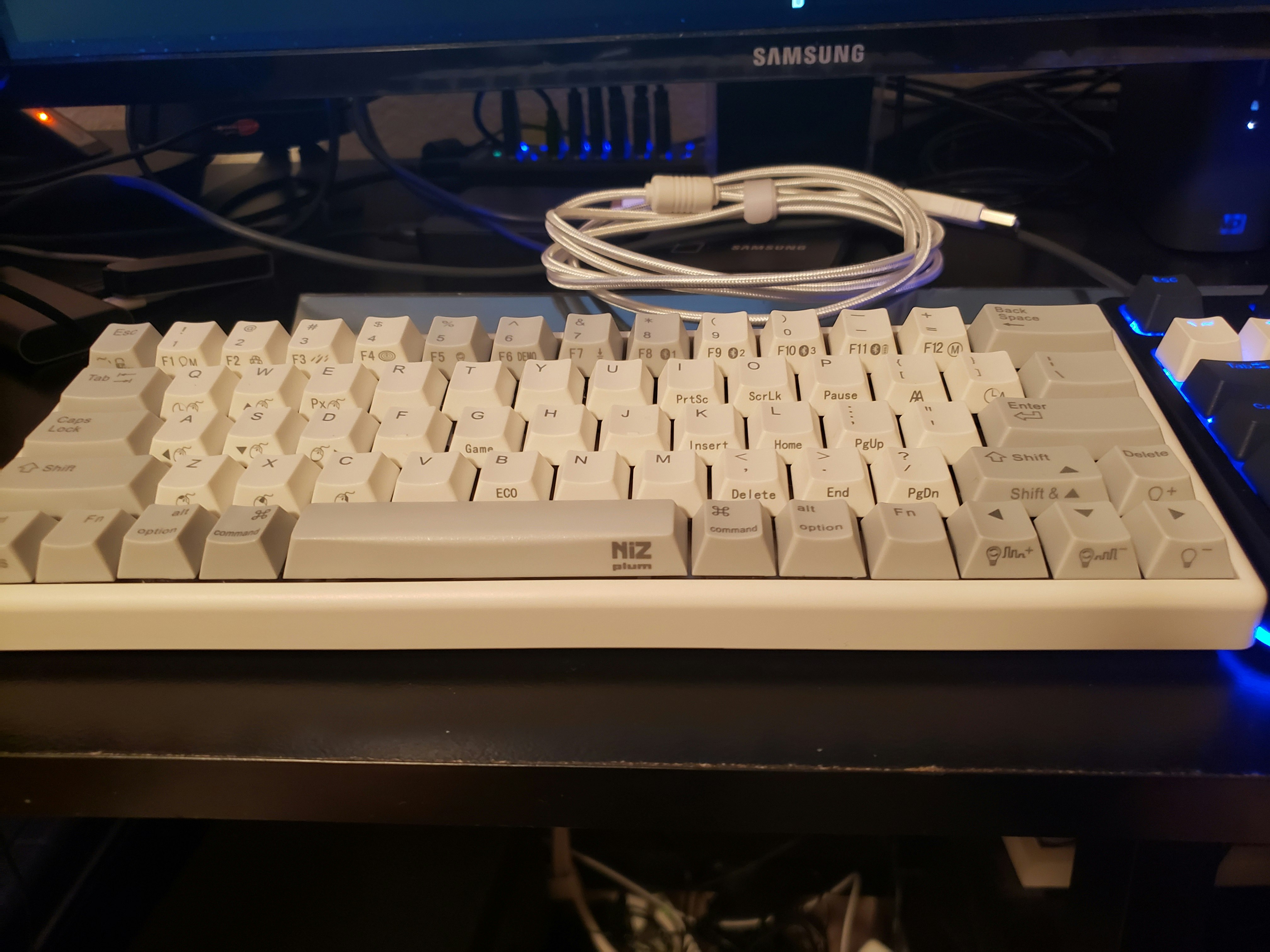 Utilizing electro-capacitive key switches, the NiZ Plum Atom66 combines the silent operation of a rubber dome keyboard with the reliability and tactility of a mechanical keyboard. The construction consists of a rubber dome that houses a slider, over which is a coiled spring and a printed circuit board. The result: limited resistance from a soft tactile bump, and individually weighted keys for a consistent feel. What’s more, you can cut the cords and get it with a Bluetooth connection—or go even further and get it with RGBs, too. Outfitted with durable PBT keycaps, the board is durable and resistant to the oils that build up from your fingertips over time. If you want to adjust the layout, feel free: It’s programmable and macro-compatible as well. Built with the latest USB-C connection, it’s fast and efficient.