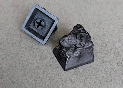 Bring long-buried natural remains, now unearthed, to the top of your keyboard. Designed and manufactured from start to finish by the artisans at NZCaps, these keycaps showcase meticulous detail finished with a durable graphite coating. Choose the Aries, which features the skull of a ram, or the Rex, which features the skull of a Tyrannosaurus Rex. Both skulls are set atop a textured base to look as though they are still partially buried. Compatible with Cherry MX switches and clones, these custom keycaps are perfect for any keyboard that needs a touch of the natural world in all of its stunning, scary wonder.