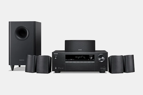 Engineered for immersion and versatility, the Onkyo HT-S3900 5.1 receiver and speaker system brings studio-quality sound to any space. Outfitted with a powerful receiver and six speakers, the HT-S3900 outputs an impressive 60 watts per channel at 8 ohms. Connect wirelessly via Bluetooth with support for the aptX codec to easily stream music from a wide range of sources. You can also hook the HT-S3900 up to other hardware in your setup via four HDMI 4K ARC, two composite video, one optical, one digital coaxial, and three stereo RCA audio inputs. Whether you’re spinning records, listening to the radio, or streaming the latest TV shows, this speaker system helps you get the most out of your sound.