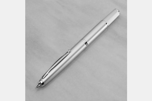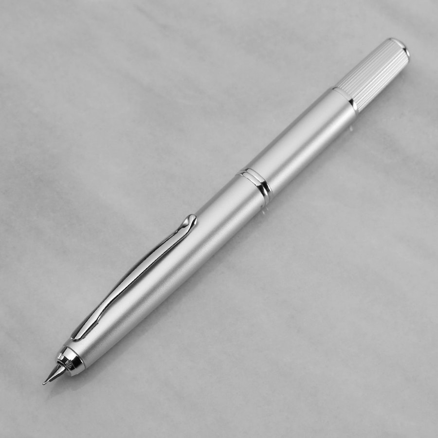 Note: At checkout, you’ll have your choice between the Silver finish with a Medium nib, the Black finish with a Medium nib, and the Black finish with a Fine nib. Quantities for these options are limited to 75 pens, 25 pens, and 4 pens, respectively (104 pens total). This model is discontinued, and may not be available again in the future.