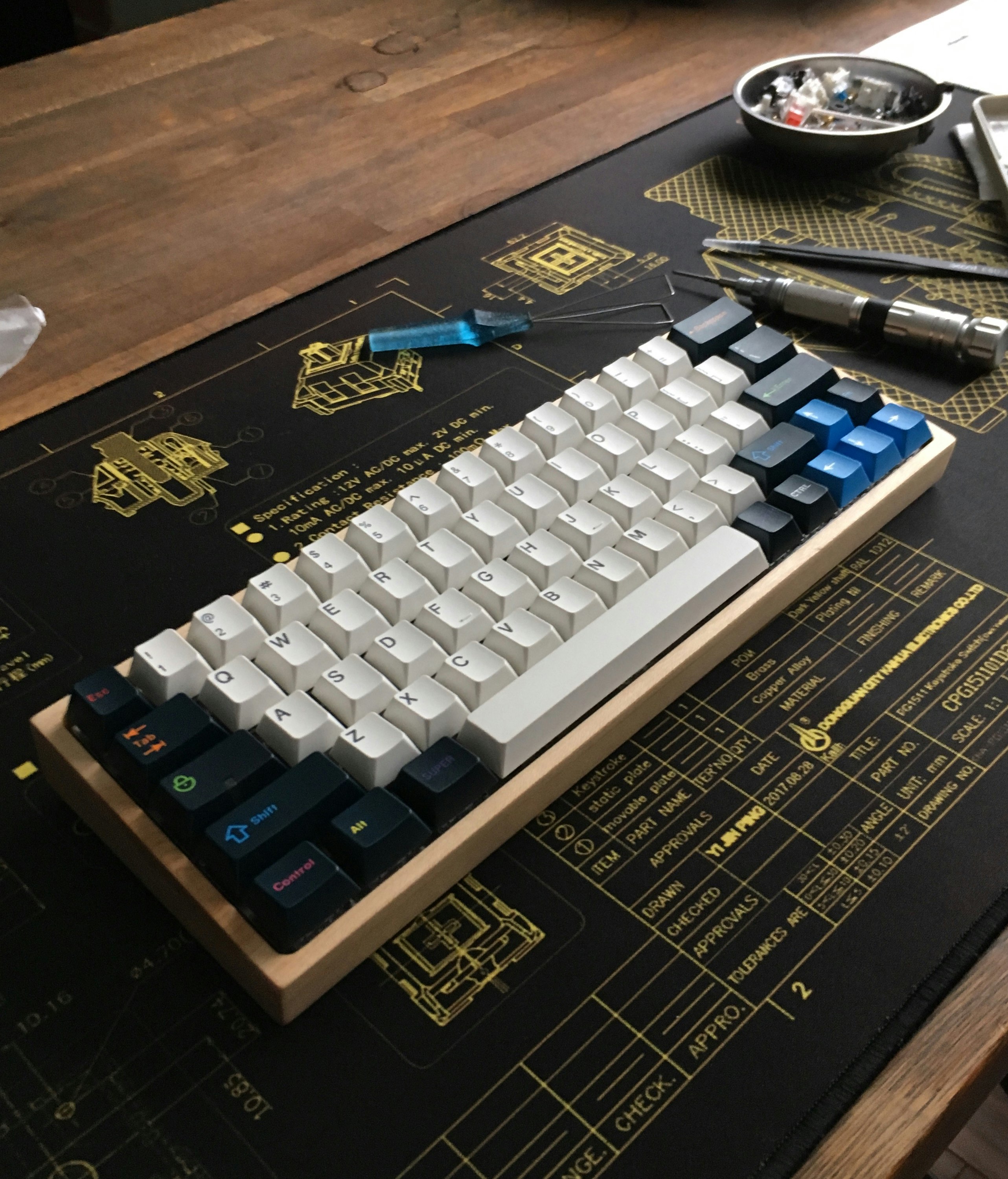 Another point of note for me is the sound. The wood reverberates and intensify whatever sound your board makes and it can be loud depending on the pcb/plate/switches combo you are using. My case is the wrist-restless model and the screw posts are not on risers so there's no room for dampening material, a slight unfortunate design deviation in my opinion.