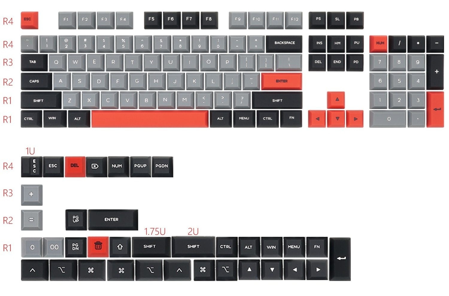 Epomaker and KPrepublic also offer the Skyloong GK2 Silicone(?) Keycap Set. Assuming that their product listing is identical to Drop's, here's what the full keycap sets look like:
