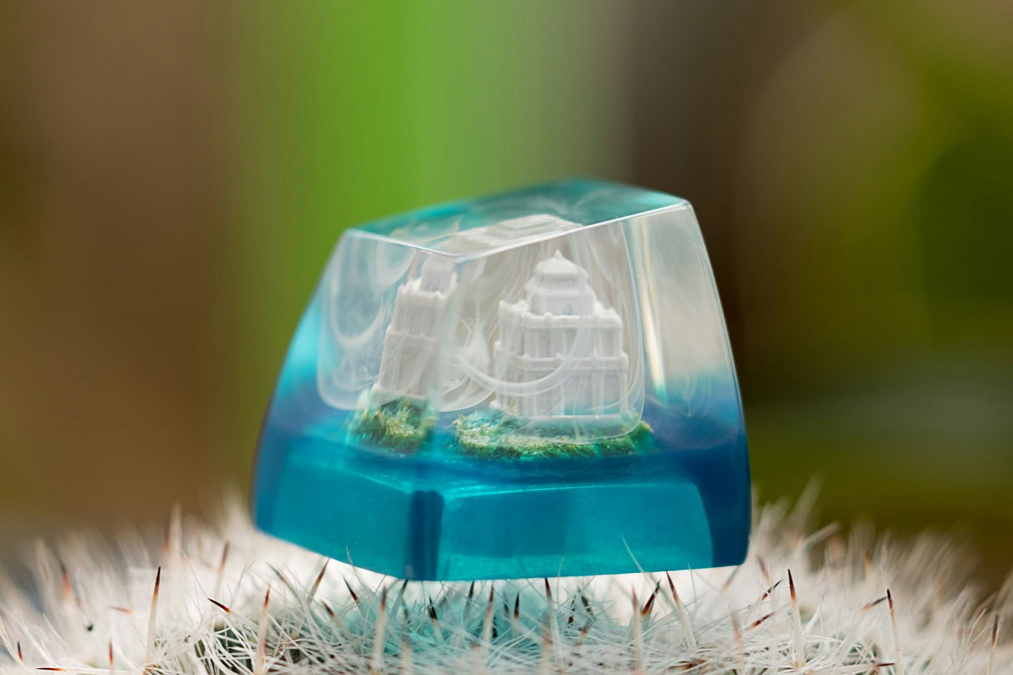 The price is a little steep based on the design though. I can see clearly as it is 3d printed structure glued to the base with some little green thingies as grass, the base is painted a little. Pour resin in and wait a bit to paint the White cloud. Some variant even have the building not painted (horrible decision), as in coming straight out of the 3d printer with no refining. When looked far away, this building is not distinguishable. When looked closely, the 3d marks got in the way. There is no extra work to make the building standout more, which is why it looked so plain (nothing special). Maybe put a turtle or a sword somewhere. If to search for ho hoan kiem image, it showed a lot of trees in the background. Given this structure a lot more contrast. A symbol in the middle of a busy city, this keycap does not tell that story though. Does not worth 45 in my opinion. Pass.