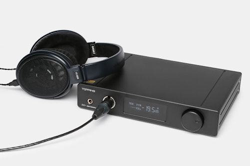 It’s not often that a fully balanced DAC/amp comes along at a price like this. Featuring a four-pin balanced connection on the front, the Topping DX7 is ideal for driving headphones like the Massdrop x Sennheiser HD 6XX with a balanced cable installed. Along with being a great pairing with a computer, it can be used as the center of an audio setup and features two XLR outputs, a coaxial input and output, a USB input, and an included remote control. This all-in-one unit uses XMOS and dual ESS DACs and a four-channel amp program, and supports up to 384kHz/32bit PCM files and DSD128. Complete with an OLED display, it can run either 110V or 220V and has a power mode switch on the left side.