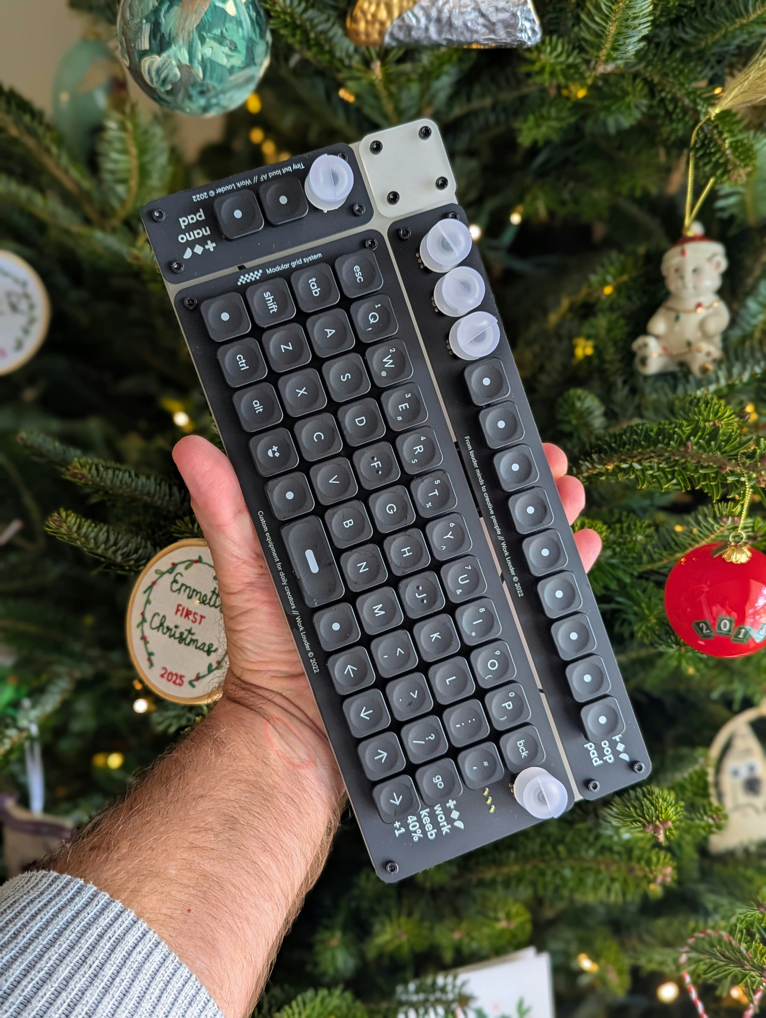 - Layout: 60% footprint, 40% ortholinear keyboard