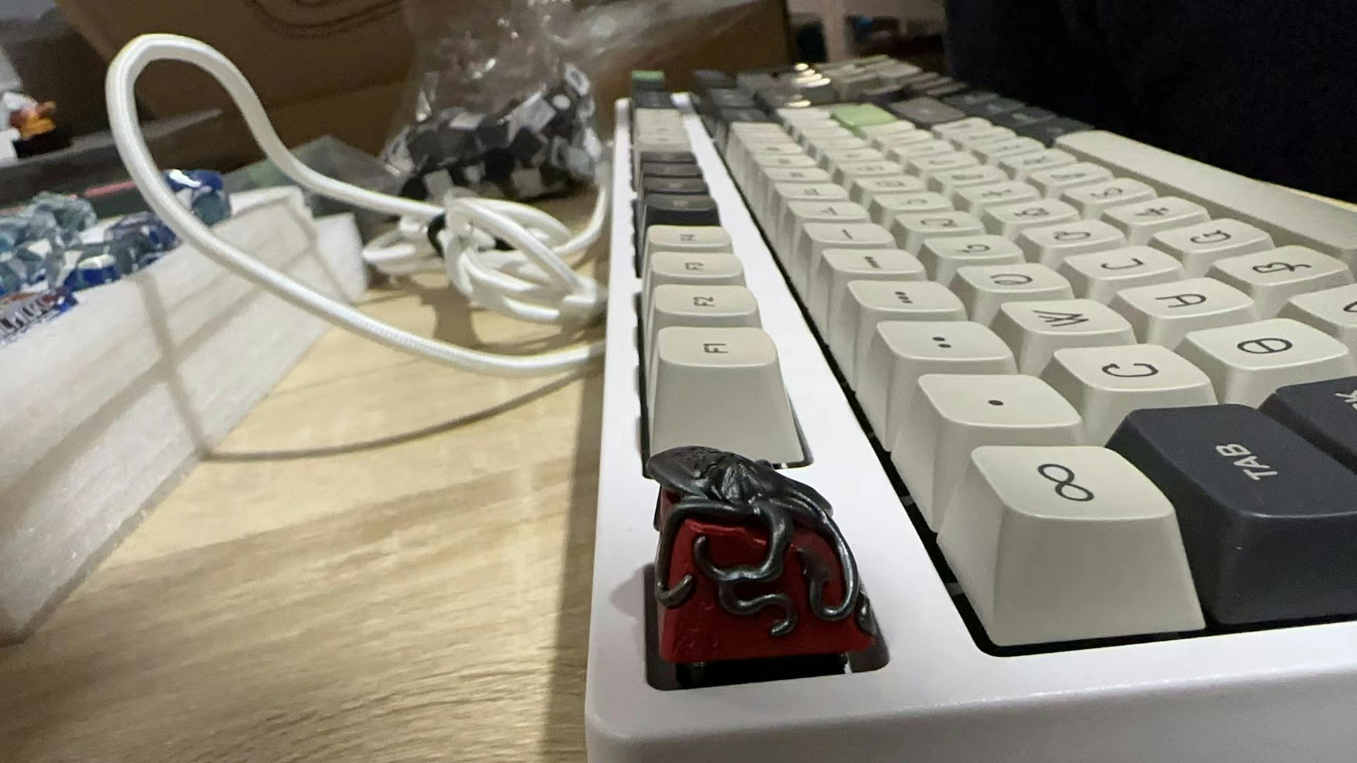 An artisan keycap can add depth and drama to your keyboard, and the ZOMO Cthulhu Artisan Keycap takes those adjectives to literal extremes. Featuring a freakishly detailed octopus clutching the top of a machined aluminum keycap, the Cthulhu will hug your keyboard with menace and deep-sea mysticism. The talented artisans at ZOMO have machined the silver-colored octopus component out of one piece of aluminum to ensure a seamless, organic look, and fused the body to a similarly seamless base to provide a two-tone, almost natural look. They’ve also carved some pass-through holes on the back to bring a bit of your keyboard’s RGB to the ocean’s surface. Whether you’re into deep-sea mythology—or you just fancy your typing skills as octopus-like—the Cthulhu makes a mythical addition to your keyboard submersible.