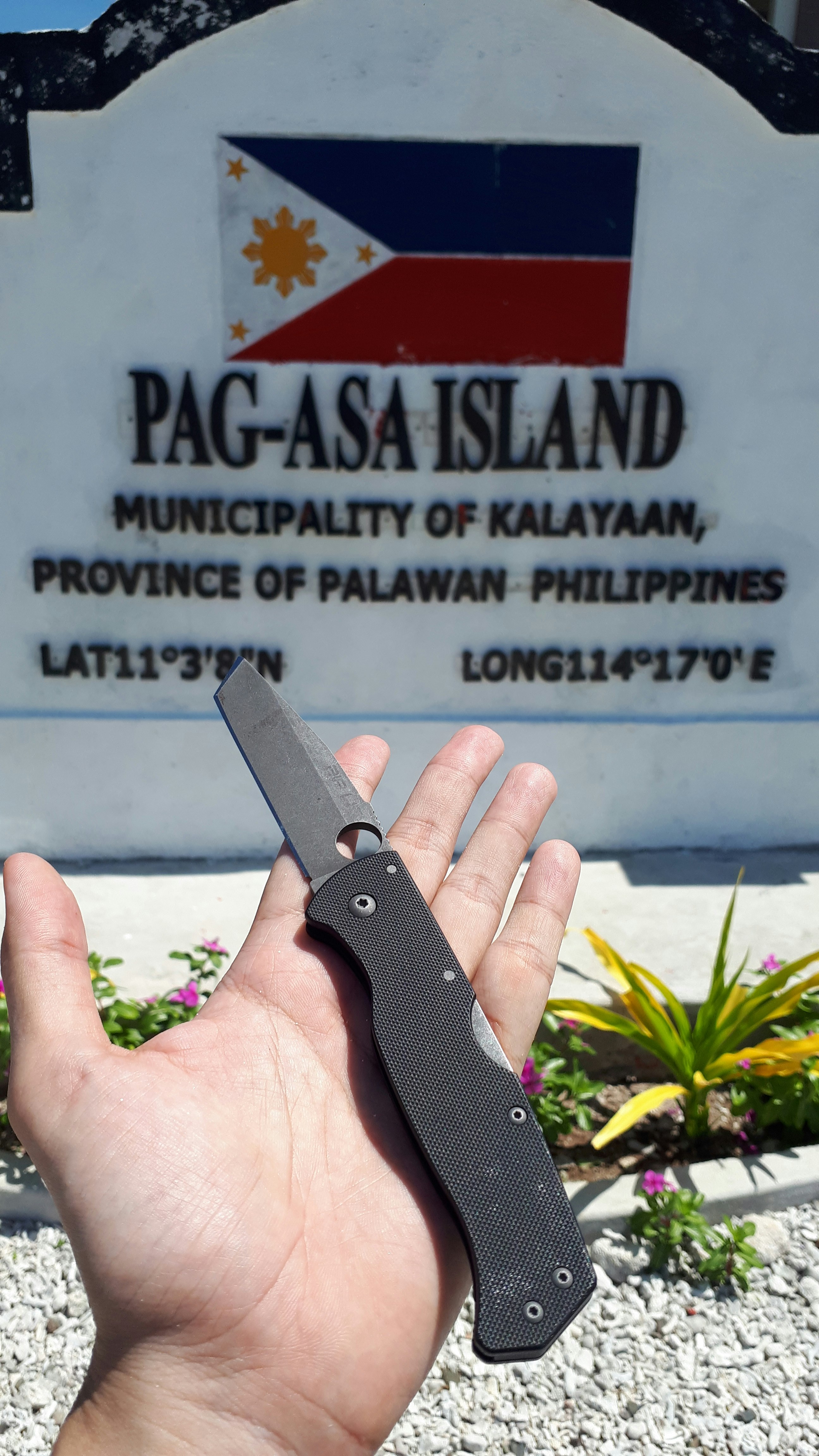 Took my customized Cold Steel Air Lite to the Pag-asa Islands in the West Philippine Sea. The knife was customized by Hill Top Knives and Gear and I requested a thumbhole opening and acid...